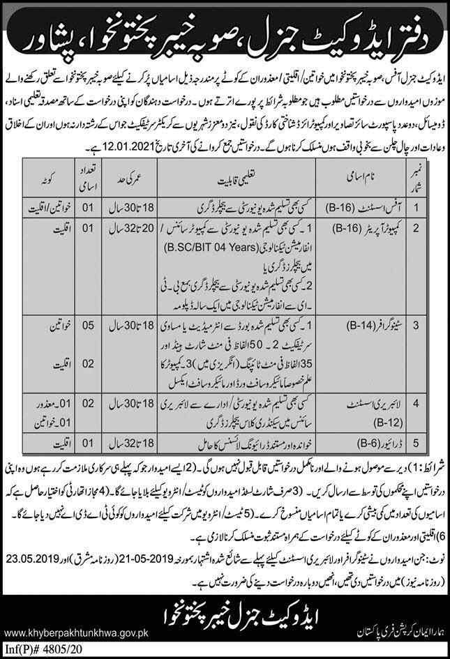Below is the complete detail about the vacancies in the Advocate General office KPK.