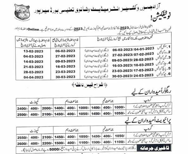 Home » Admission » BISE AJK Issued SSC (9th & 10th) Annual Exams Registration & Fee Schedule 2023