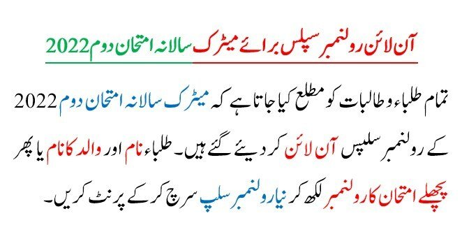How to Download Bannu Board SSC 2nd Roll Number Slips 2022
