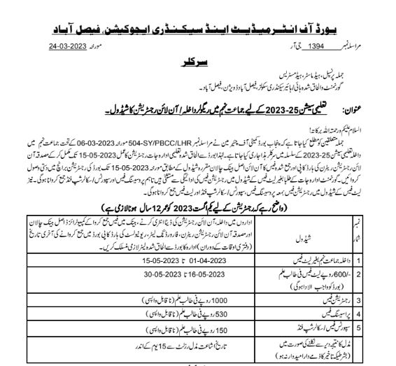 Faisalabad Board SSC-I Online Registration Schedule 2023