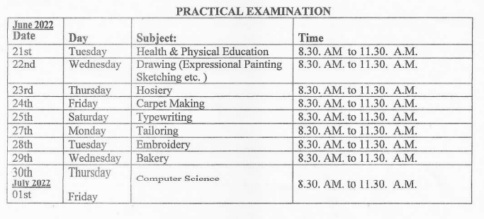 BISE Lahore Matric Practical Exam Date sheet 2022 for deaf Students:-