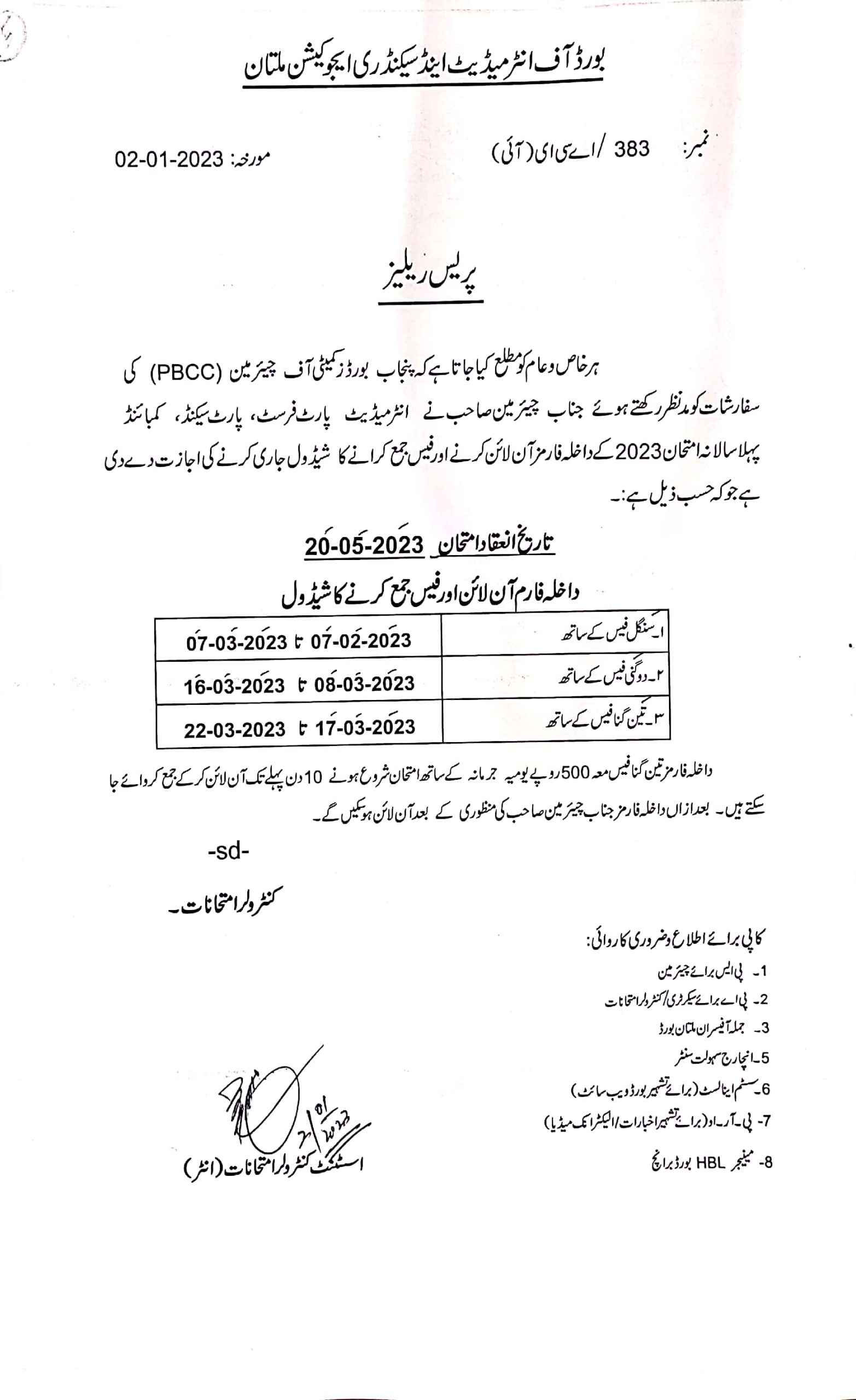 11th class registration schedule BISE Multan BISE Multan board BISE Multanschedule 2023