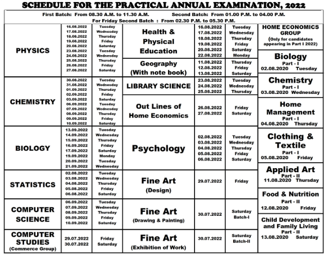 Have a look at the detailed practical exam date sheet of inter issued by the Multan board. The details are as under