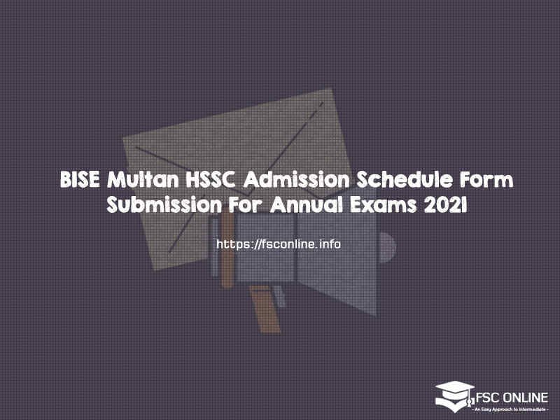 It informs the Board of Intermediate and Secondary Education BISE Multan issued a notification regarding HSSC Annual Exam Admission Schedule for the year 2020. On 2nd December 2020, BISE Multan ordered all the government and private institutions about the schedule of Admission form submission of Higher Secondary School Certificate annual exams 2021.