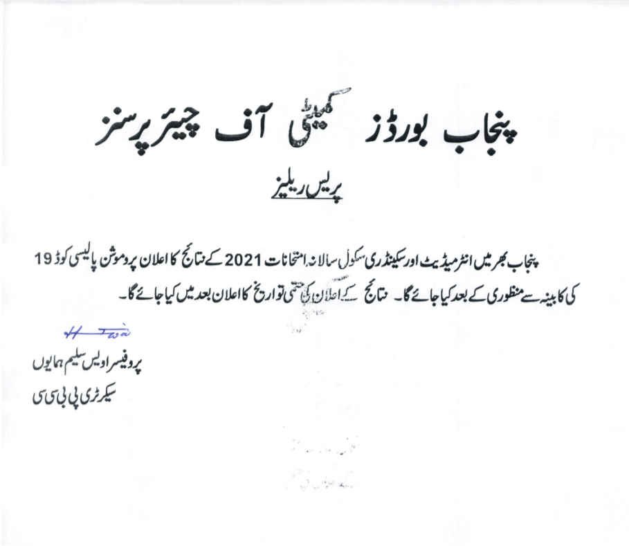 On 28th September 2021, Punjab Board Chairman Committee issued the latest press release regarding the matric result declaration. As per the notification, it is to notify all that PBCC postponed the matric result declaration date for the session 2021. All those applicants who sit in the annual examination of matric will now keep patience and wait for the result. Thousands of students are impatiently waiting for their results. But due to some reason, the PBCC was ordered to postpone the result. The new result declaration date has not been announced yet. We will notify you soon after receiving any notification from the Punjab Board. Moreover, PBCC postpones the exams of all Punjab Boards, including Lahore, Multan, Faisalabad, Gujranwala, Sahiwal, Sargodha Rawalpindi, and Bahawalpur. Moreover, the result will declare after the approval of COVID-19 promotion policy.