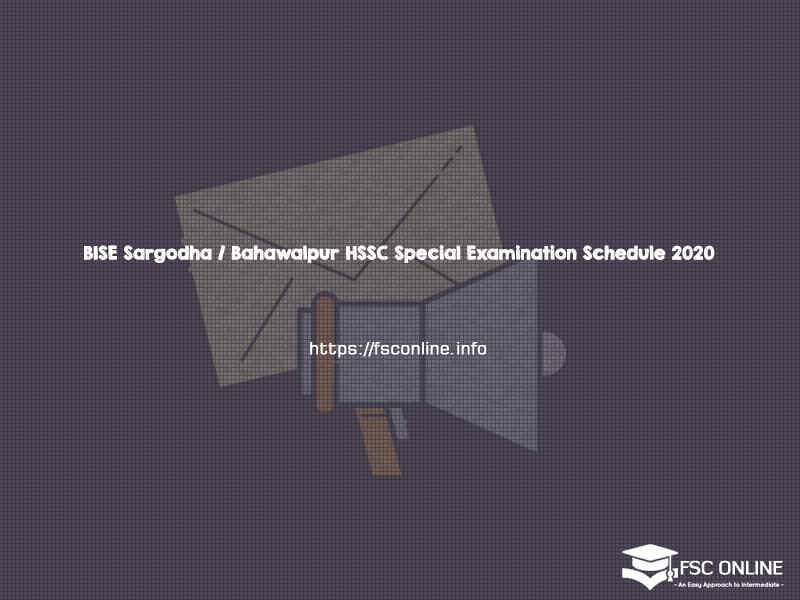 BISE Sargodha/Bahawalpur HSSC Special Examination Schedule 2020