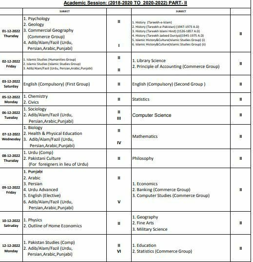 | 09-12-2022 | Punjabi, Arabic, Persian, Urdu Advance English (Elective) | Economics Banking Computer Studies |