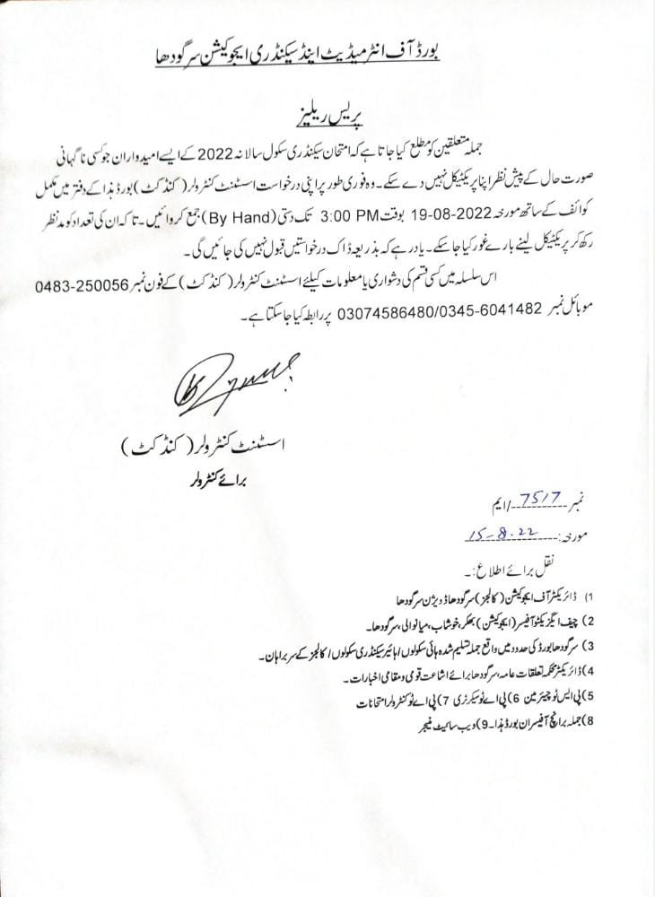 Take a look at the BISE Sargodha notification regarding SSC practical exams 2022.