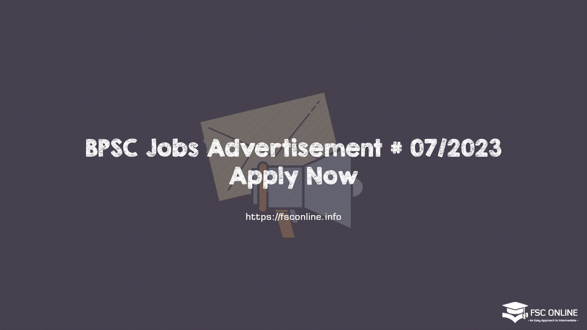 The Balochistan Public Service Commission BPSC advertised the latest vacancies for the different Departments through advertisement # 07/2023. The announced Jobs are for male and female candidates having Balochistan/Local domicile. The eligible candidates meeting the criteria for the concerned posts can apply through the commission website. Below, we provided the complete detail about the BPSC Jobs Advertisement # 07/2023. So interested candidates can visit the BPSC website and apply online. The last date for the BPSC Advertisement # 07/2023 jobs is 15 June 2023.