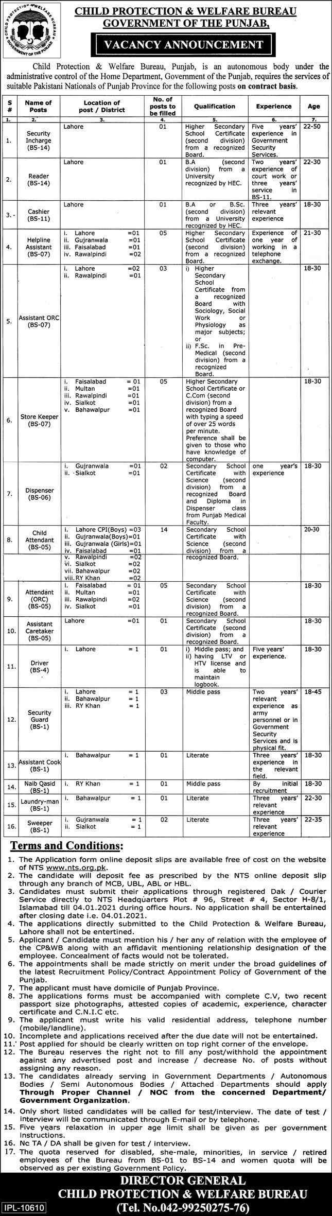 Child Protection and Welfare Bureau has announced the latest vacancies for the various position in Punjab. These vacancies are for the administrative control of the home department. For these posts, the organization is looking for talented and active candidates. However, the candidates having Punjab domicile can apply. So, eligible and interested candidates must apply for their required post. The last date to apply in the Child Protection and Welfare Bureau is 04 January 2021.