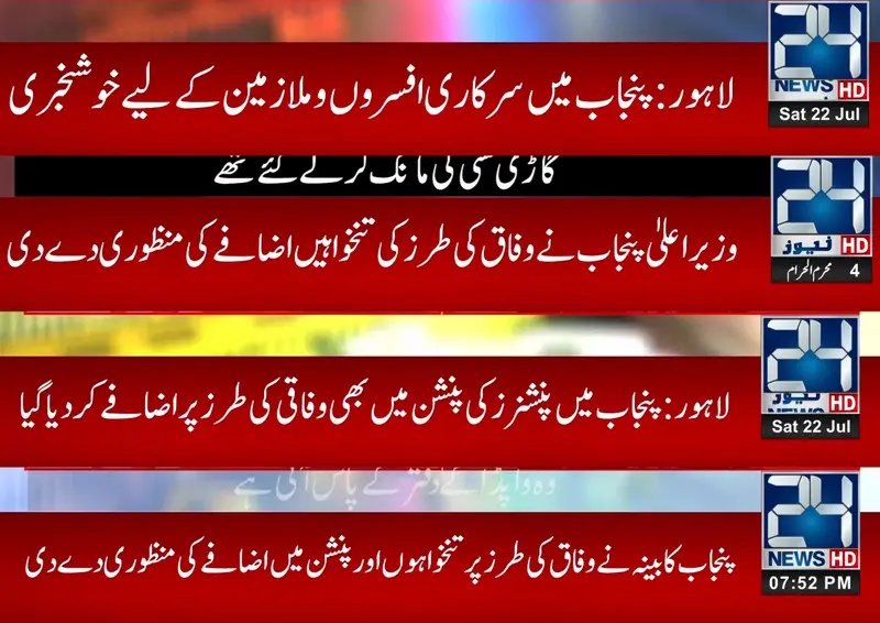 We have brought amazing news for all the candidates who are working in the government sector of Punjab. According to the details, we are glad to notify all that the Chief Minister officially approved the decision to increase the salaries and pensions of government candidates. Now the salaries of such applicants will equal the Federal Board candidates. Applicants who belong to Punjab will follow this decision. They implement this decision from 22nd July 2023. Now all Punjab government employees will get a 35% salary increase on their running initial pay, and all retired employees will get a 17.5% increase in their pensions.City42 News channel, which is under Mohsin Naqvi itself, has told this news. There was a cabinet meeting today, 22 July 2023. For better understanding, we also share the snap of that news.