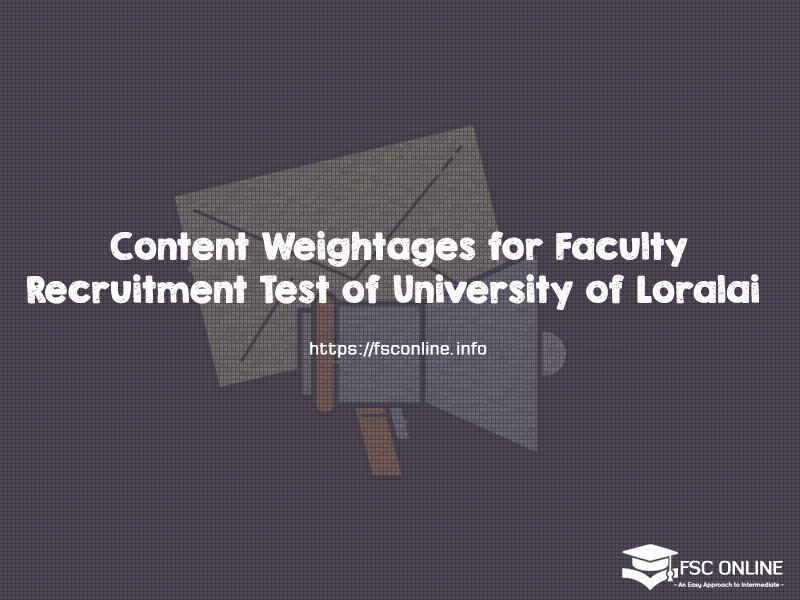 HEC has issued the content weightages for the Faculty Recruitment Test of the University of Loralai. Thus, those candidates who applied for lecturer jobs can now get the syllabus for the test from here. The university of Laralai will conduct the recruitment test on 08 August 2021. However, the timing of the test will be 12:00 PM. The test for each post will contain 100 MCQs. for further details, click here.