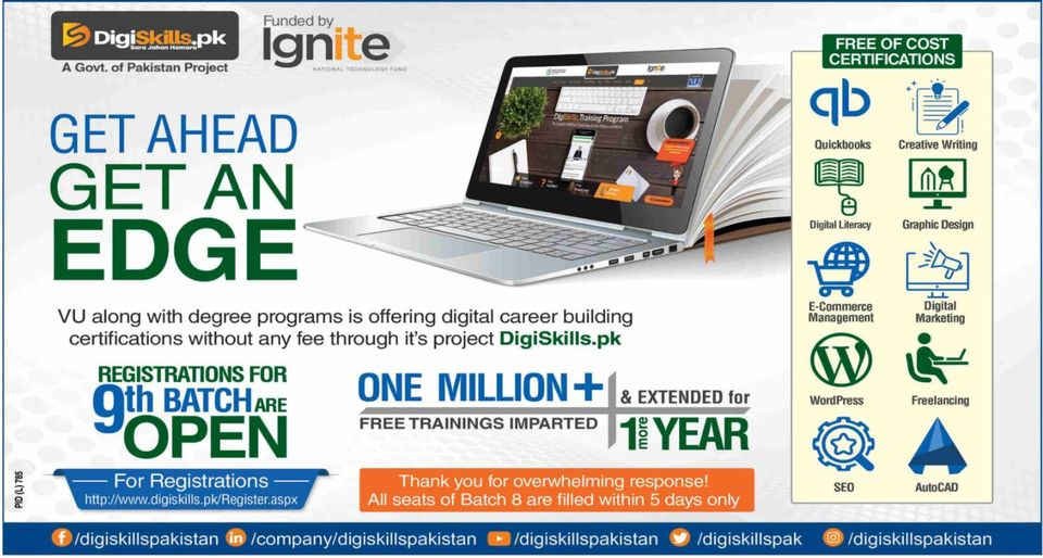 Digiskills has announced the 9th batch of enrollment in the different courses through free registration. For the 9th batch, the registration has been started from 01 January 2021. However, the students will get the admission on first-come, First Served Basis. To register yourself for the desired course, candidates have to login through the Digiskills websites.