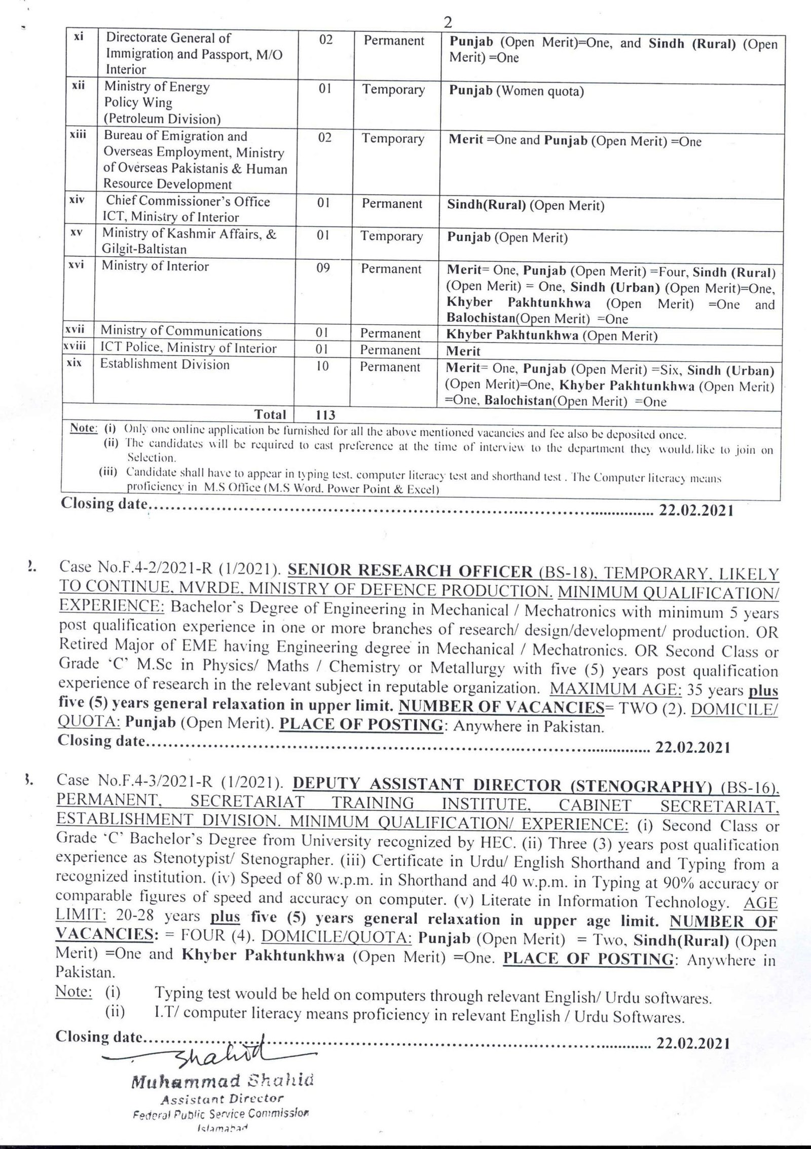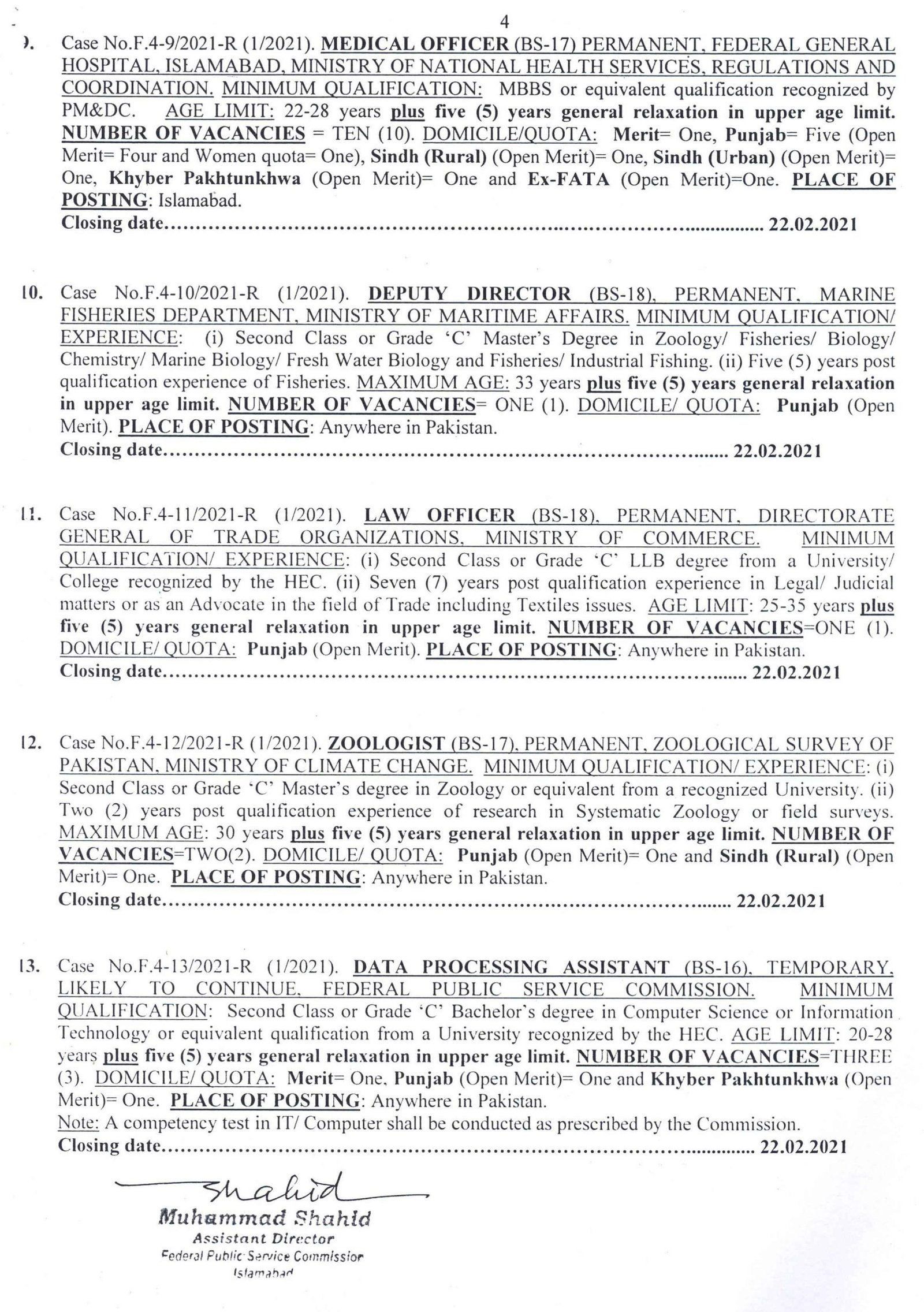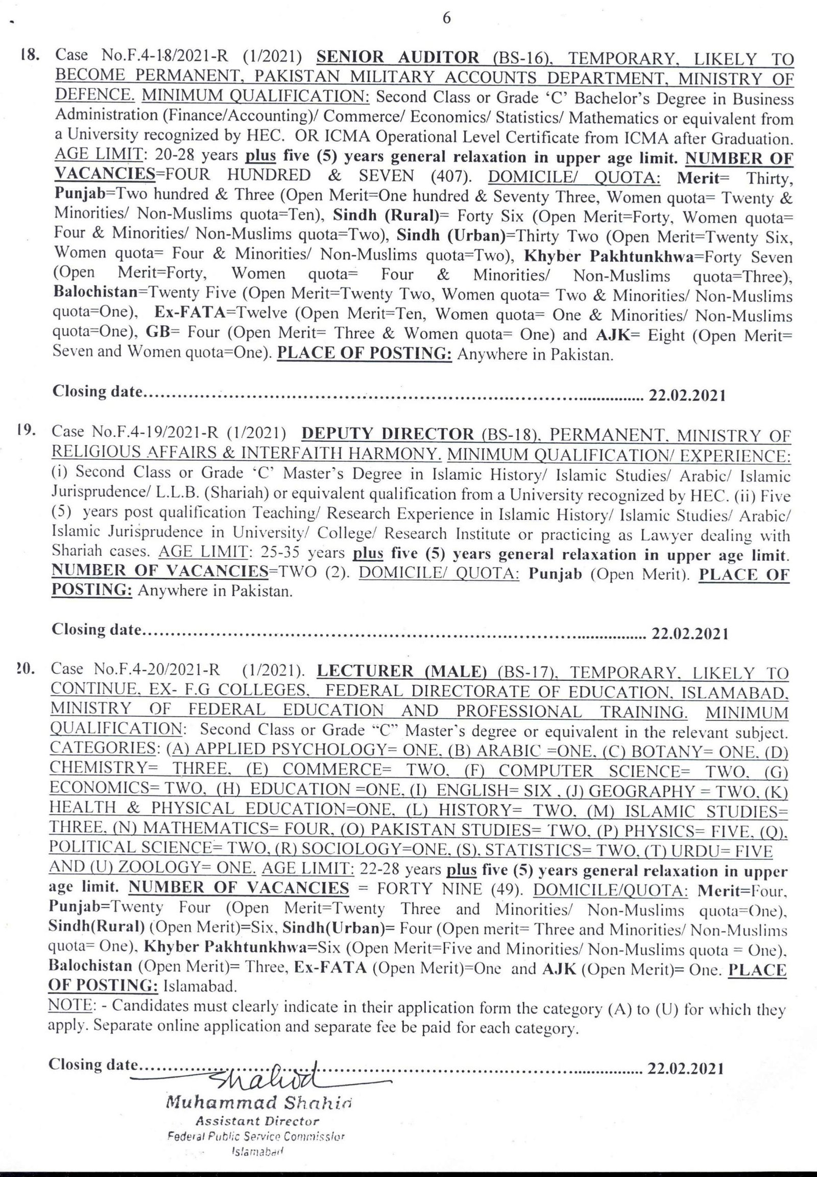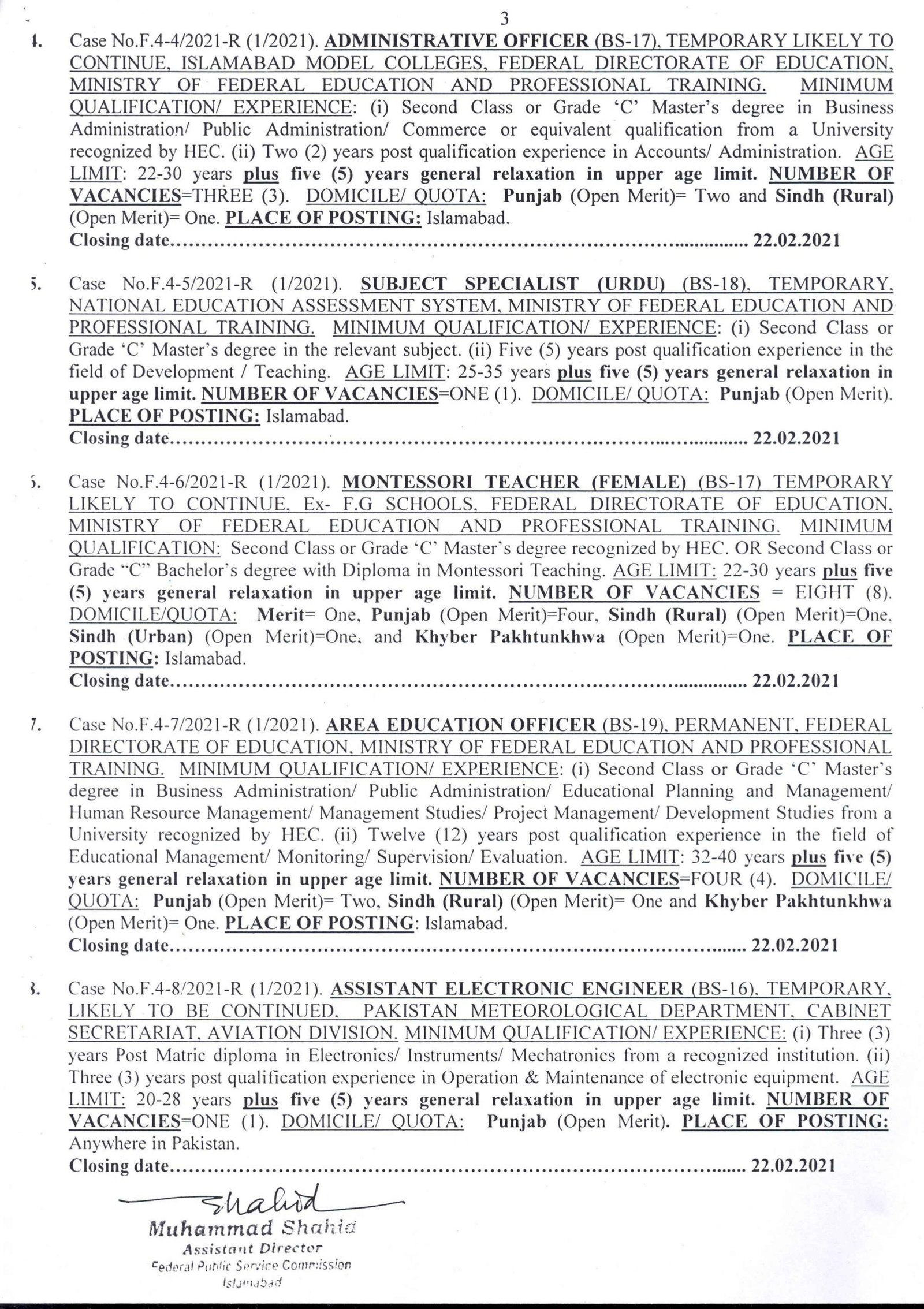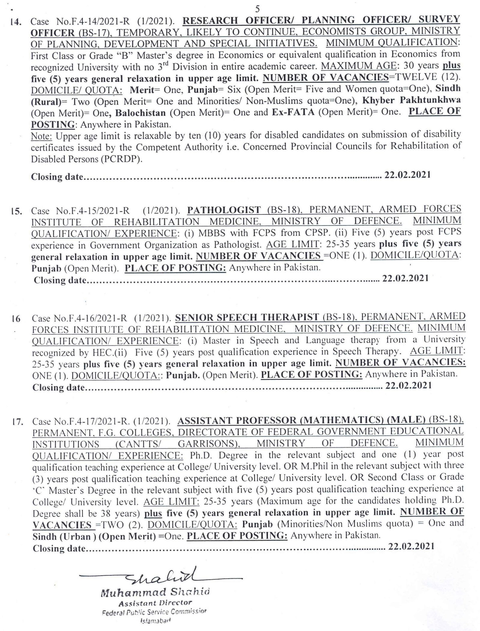 FPSC Ad 1/2021 Jobs Details