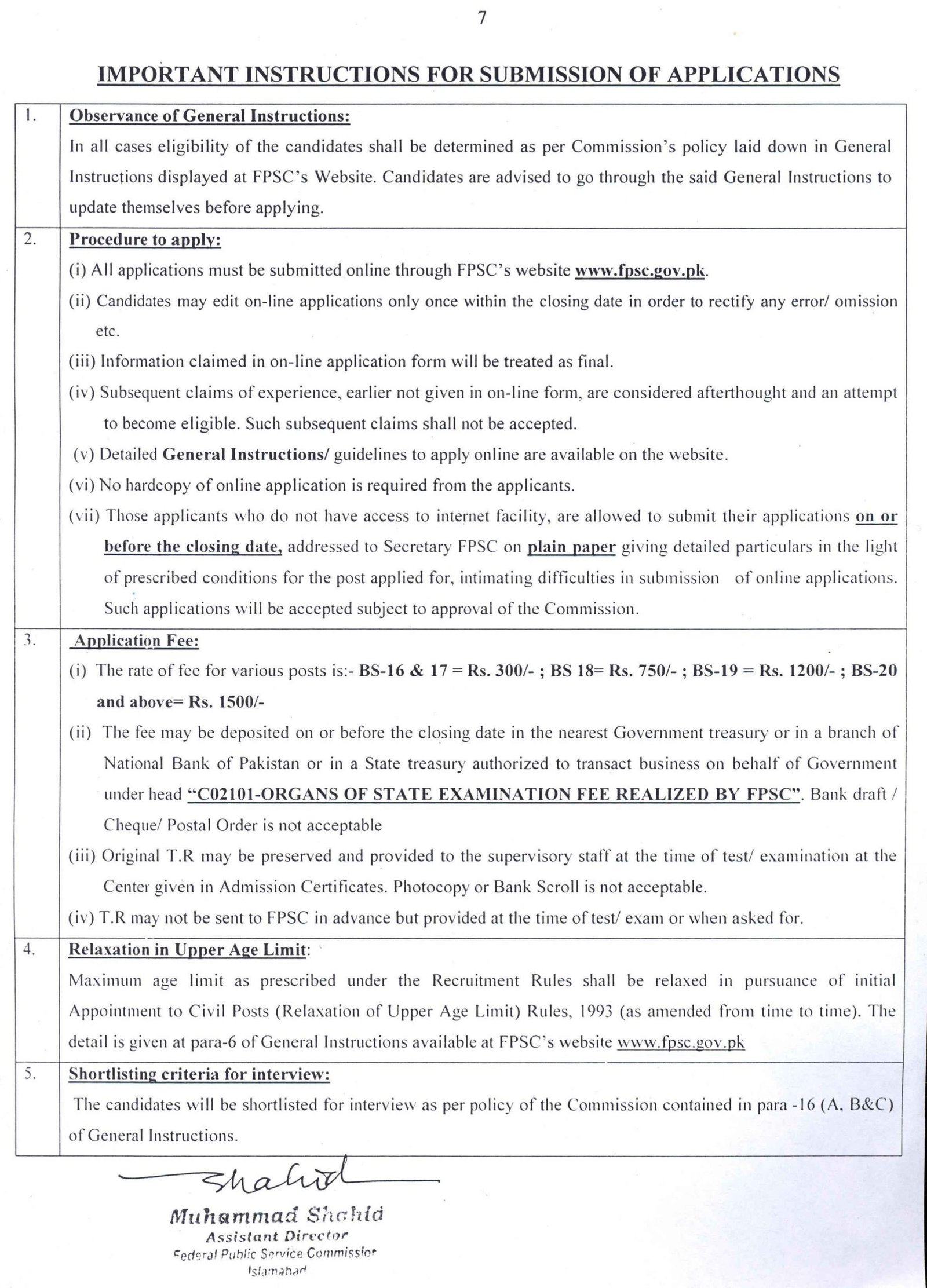 - Candidates must complete the Application form online uploaded on the FPSC website