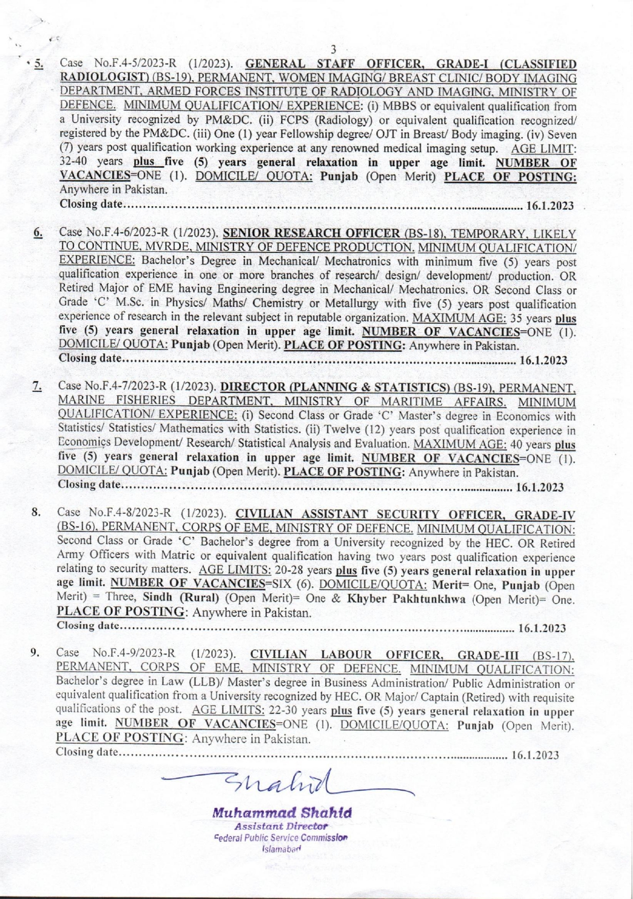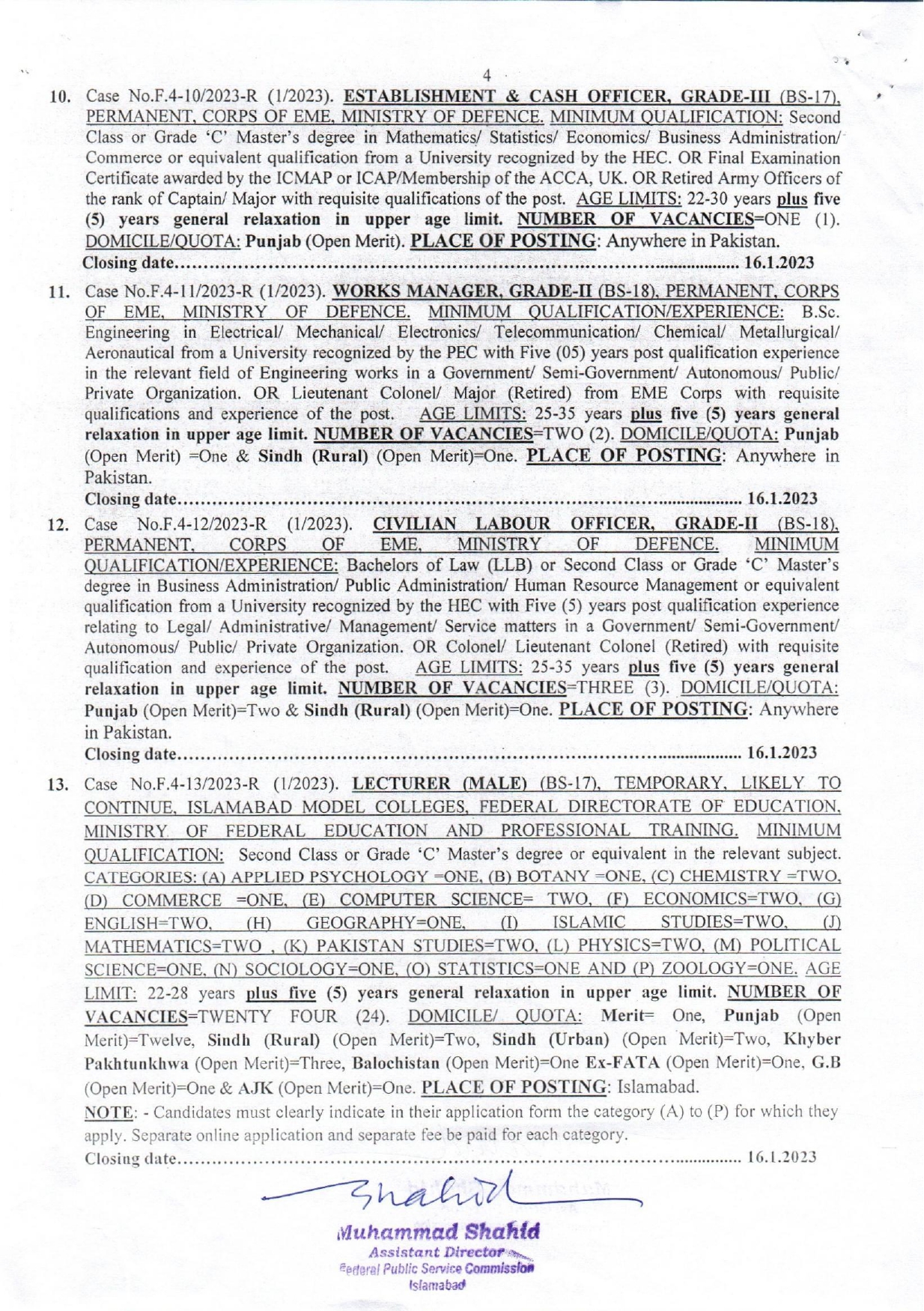 FPSC Advertisement No 01/2023 Job Eligibility Criteria