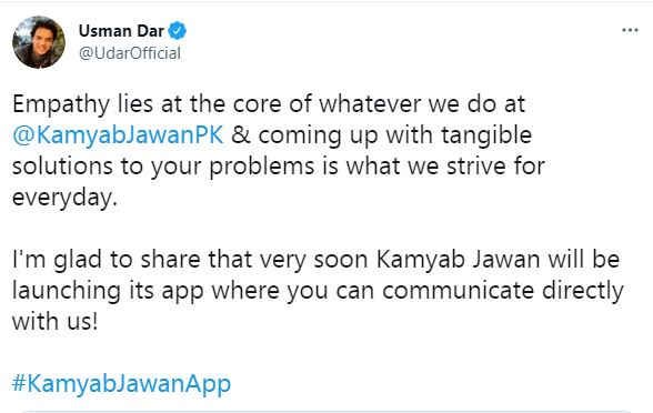According to the recent news, the Govt has plans to launch a Mobile App for the Kamyab Jawan Program. About this initiative, PM Special Assistant, Usman Dar, tweeted and talked about the App. in his tweet, he said that the government is coming up with tangible solutions to the citizens’ problems through the Kamyab Jaman Program.