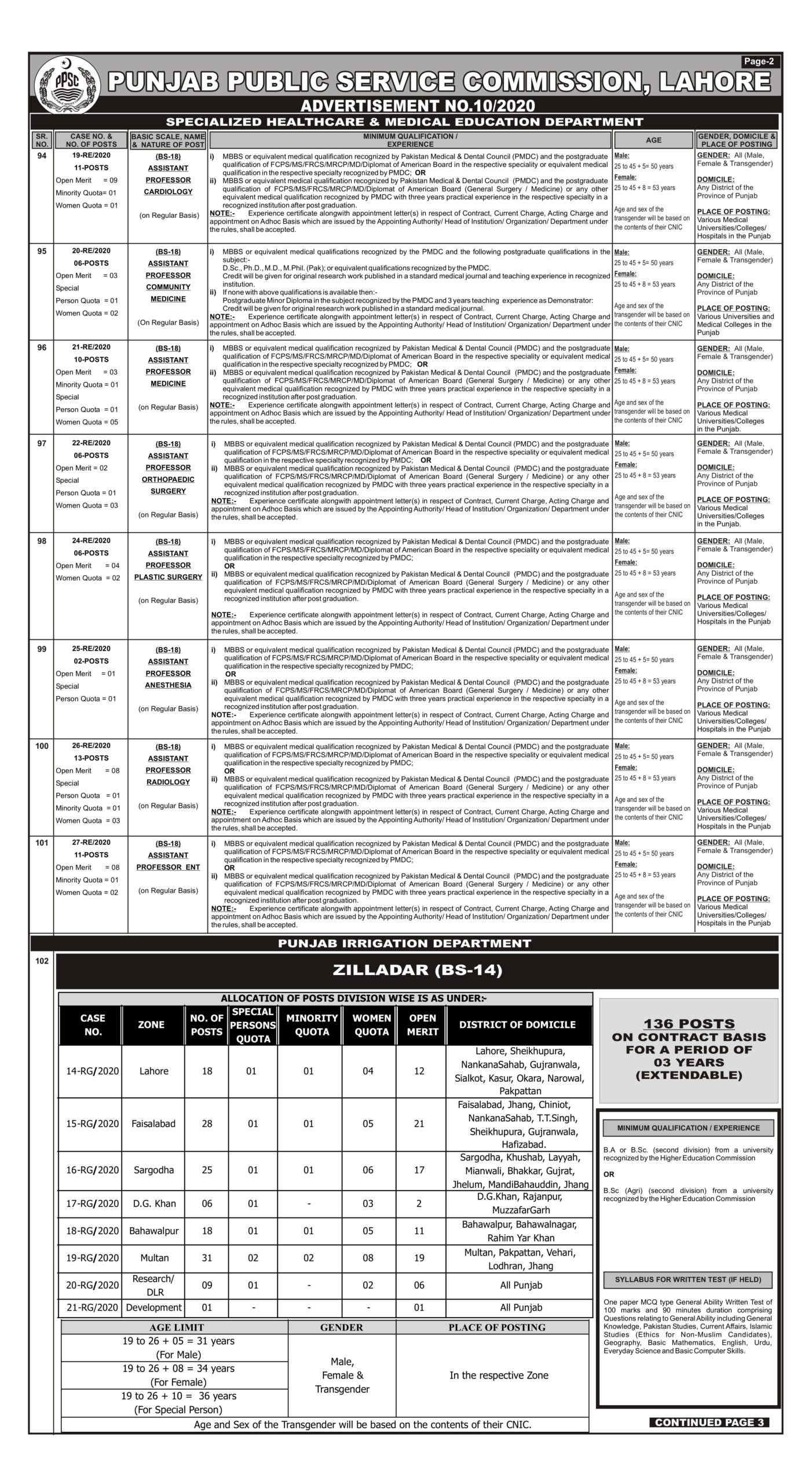 Punjab Public Service Commission has listed 200 more jobs in multiple departments. This government is advertised by the Board of Revenue, Deputy Commissioner Rawalpindi, Specialized Healthcare and medical education department, and Punjab Irrigation Department. The serious applicants who are already serving in the Government sector can apply through the proper channel.