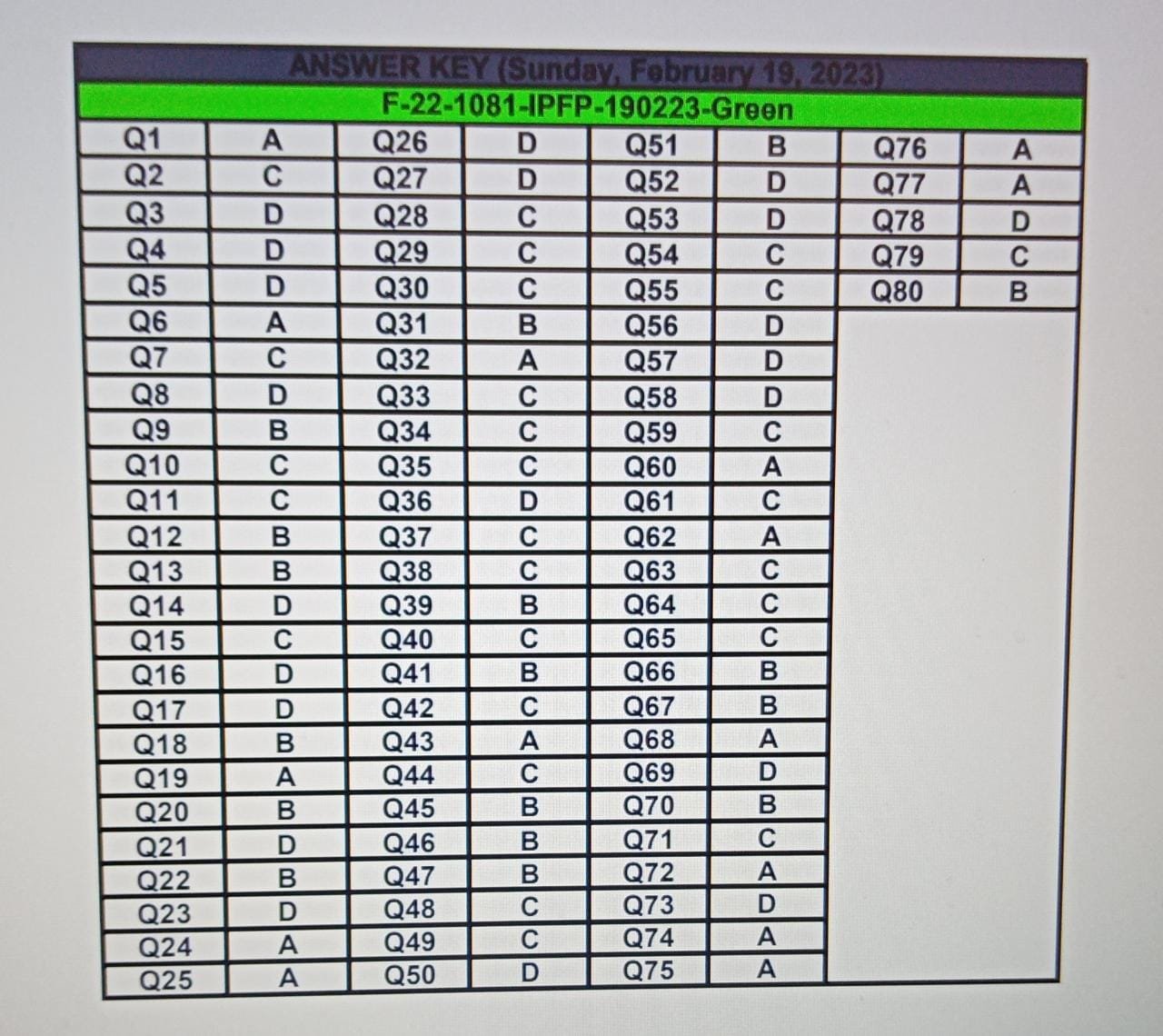 Higher Education Commission IPFP Test Answer Keys for 2023