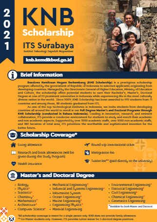 • Candidates have to submit an online application through the official link. (https://www.its.ac.id/international/experiencing-its/prospective-student/scholarship/knb/#1615867852625-dd9308b5-7bd9).