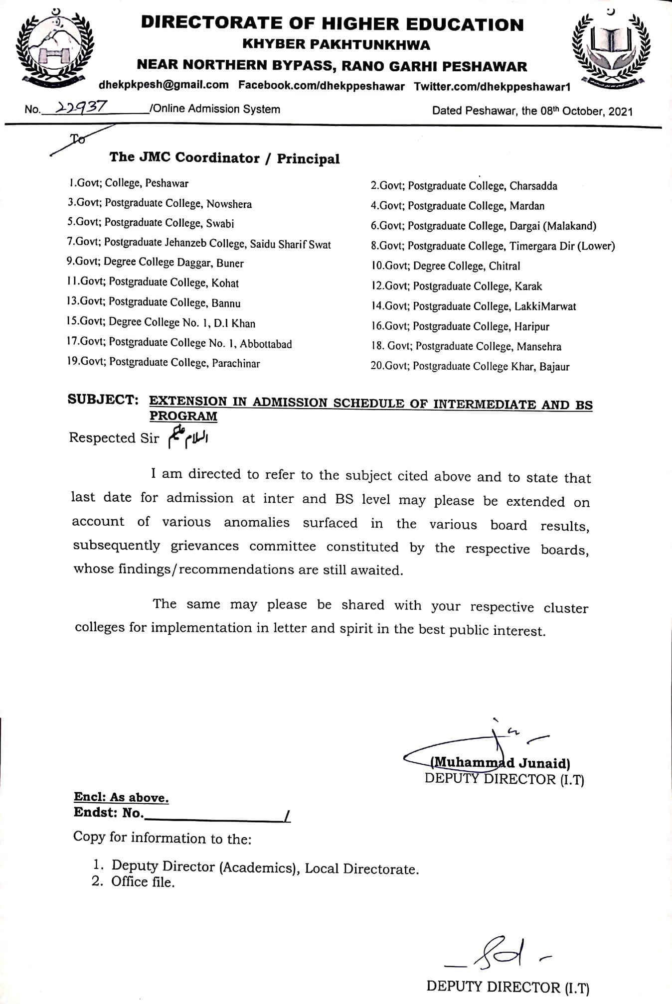 Recently, the KPK Education Department issued a notification for the KPK colleges to extend the admission dates. The notification stated the extension in intermediate and BS programs admission 2021. The reason for this request is that there are some boards whose results are still under process. So, to consider results awaited students, the KPK government said to delay the admission dates to 2021.
