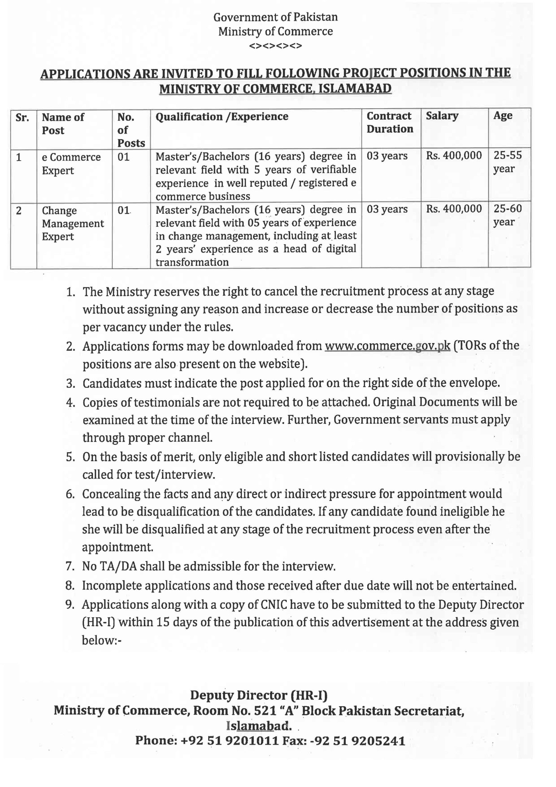 On 24th May 2021, Ministry of Commerce Institute of Trade and Development Islamabad accepted the applications for the post of E Commerce Specialist, Change Management Expert. Both male and female are highly welcome to apply for these posts. They required hard-working, talented and enthusiastic individuals for the multiple positions. This post is for the candidates having Federal Domicile. It is a full-time permanent job. The job position is in Islamabad City. Those candidates who are willing to do the job under the ministry of Commerce must apply. The last date to apply for the UDC post is 06 June 2021