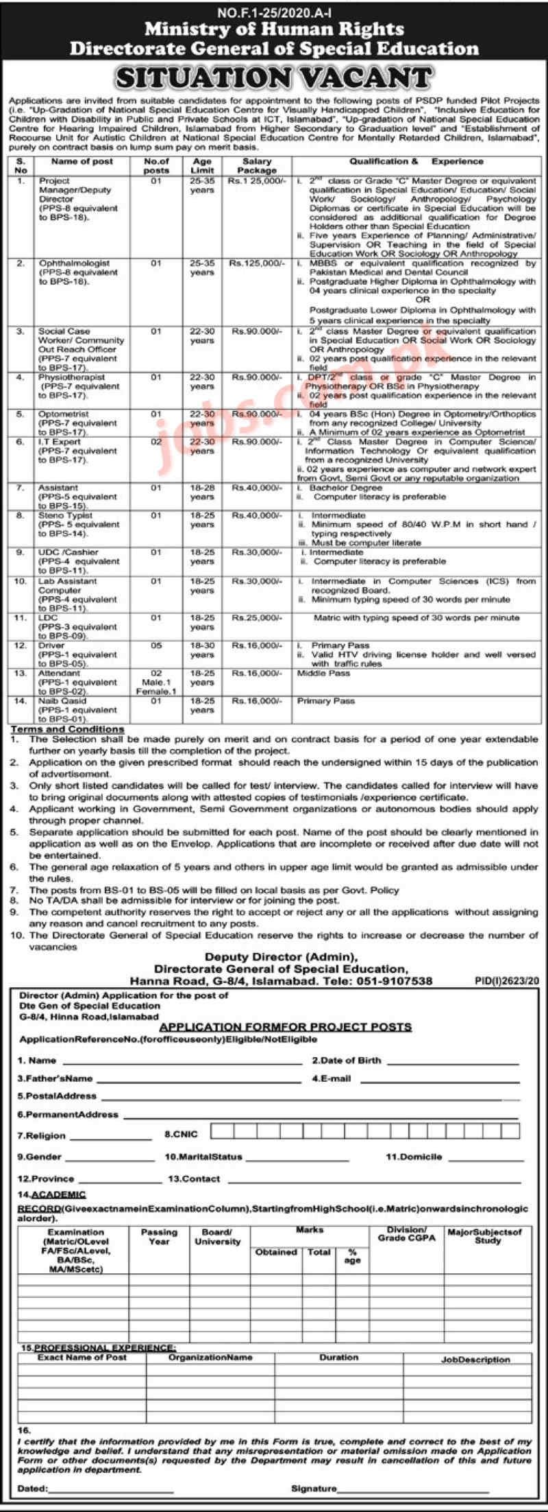 - Eligible candidates must submit applications to the directorate general of special education in Islamabad on or before 4th December 2020.