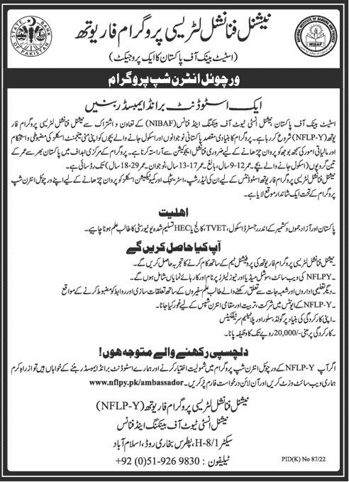 We have good news for the applicant who is looking for the State Bank of Pakistan internship 2022? The State Bank of Pakistan opens its doors for virtual internships for the session 2022. Its a desire of many students to get training in the banking sector. So, it is a golden opportunity for such candidates. The National Financial Literacy program announced the virtual internship programs for three groups of students. For the internship, the students of the following ages are eligible. One is 9 to 12 years, the second is 13 to 17, and the third is 18 to 29. This virtual internship aims to teach the students and polish their financial skills. By enrolling in this, you will also get the chance to become the Brand Ambassador of NFLPY. An applicant from Azad and Jammu Kashmir national can apply for this internship.