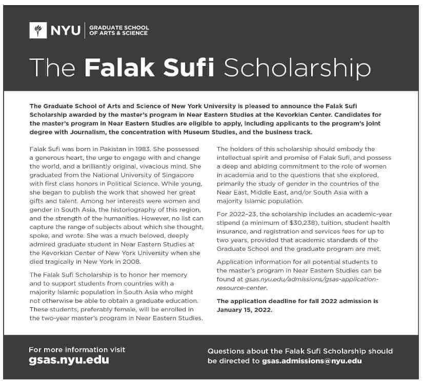 Are you looking for a scholarship program for 2021? If yes, then you are definitely at the perfect place. New York University invites applications for the Sufi scholarship. They offer this scholarship to international students. The New York government want to support Islamic population who want to pursue their education in the foreign university. The selected candidate can enroll in the 2-year degree program. Moreover, it is merit and need-based scholarship. Apart from this, it covers all the tuition fees and other expenses as well. So, what are you waiting for? Go and apply now