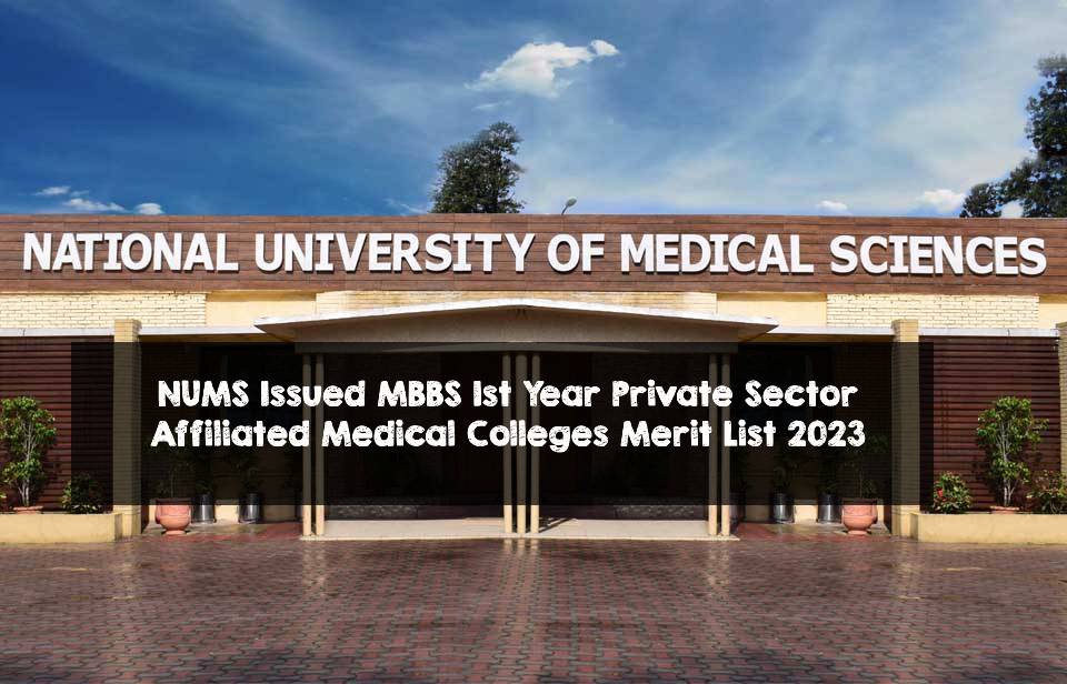 NUMS MBBS 1st Year Merit List 2023 of Private Sector Medical Colleges