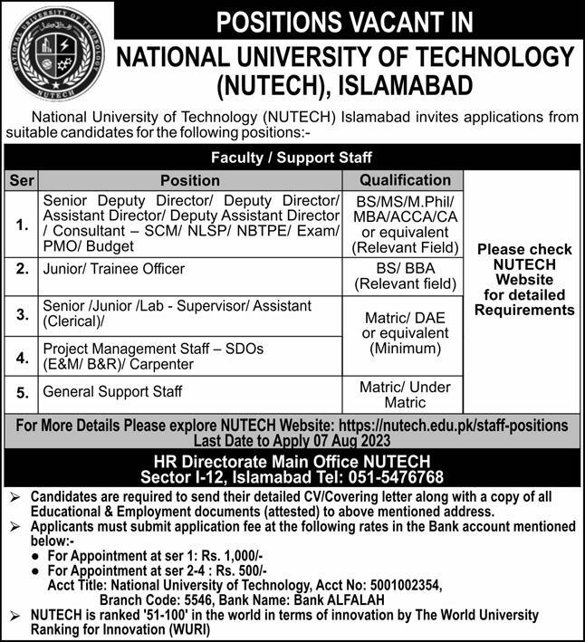 The last date to apply for NUTECH Jobs is 7th August 2023