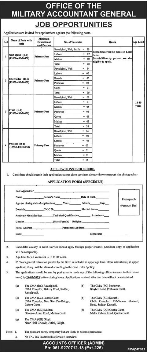 The Pakistan Military Accountant General Office (PMAD) announced the latest job positions for various posts. The advertised jobs are for the Naib Qasid, Chowkidar, Frash, and Sweeper posts. However, the application form is also attached to the job ad we provided below. So, the eligible candidates meeting the required criteria for the PMAD jobs can apply. For the ease of the applicants, we have explained the complete detail about the Pakistan Military Accountant Department jobs below. The last date for the PMAD jobs is 24 March 2023.
