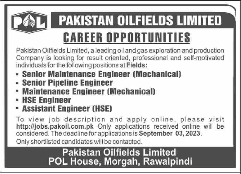 - Interested Applicants apply through the online portal: http://jobs.pakoil.com.pk.