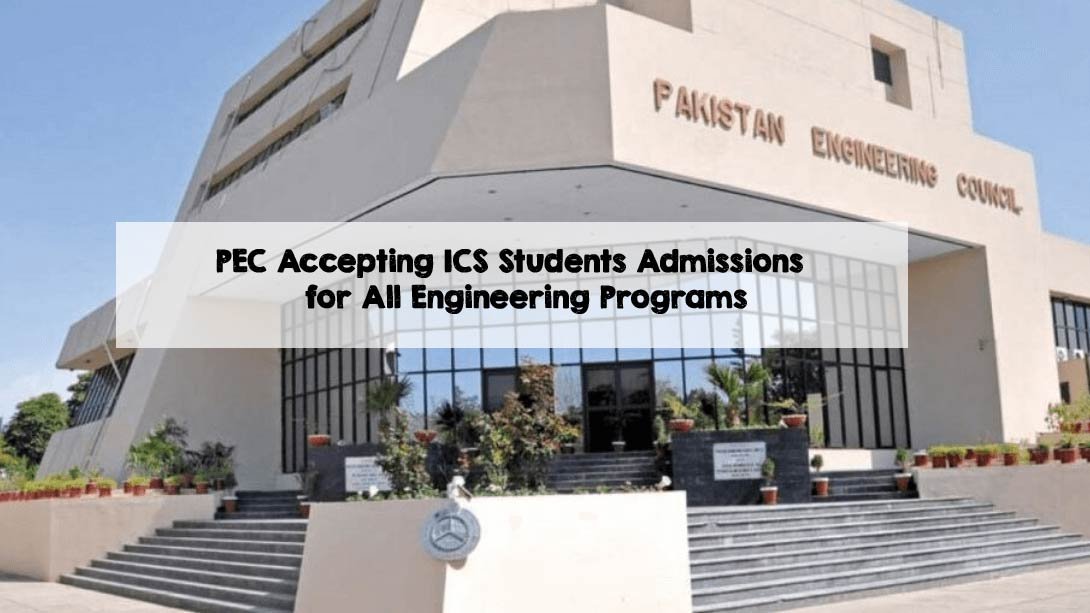 Pakistan Engineering Council announced great news for the ICS students. According to the decision, we are glad to inform you that ICs students will now be admitted to all engineering universities. PEC officially permits ICS students (with Physics, Mathematics, and Computer Science) to seek admission to all engineering programs offered in the country. The only thing which ICs students have to face is to clear Chemistry as a remedial subject in 1st Semester. Candidates combining Physics, Mathematics, and Computer Studies / Computer Science (ICS) can apply for all the Engineering programs.