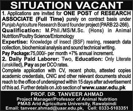 | Associate (full time) | Contract based | M.Phil and MS in Animal Nutrition, poultry science | 75,000 per month |