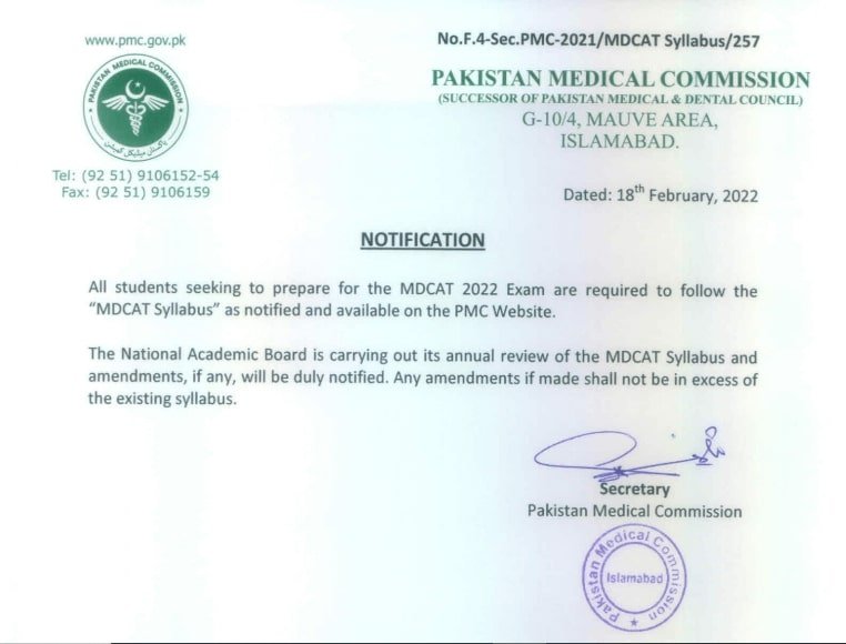 Other than that, PMC also stated the National Academy Board is reviewing the syllabus for the MDCAT. So, if any changes in the syllabus take place, PMC will notify it. Thus, if the board made any amendments to the MDCAT syllabus, it would not be in excess of the existing syllabus.