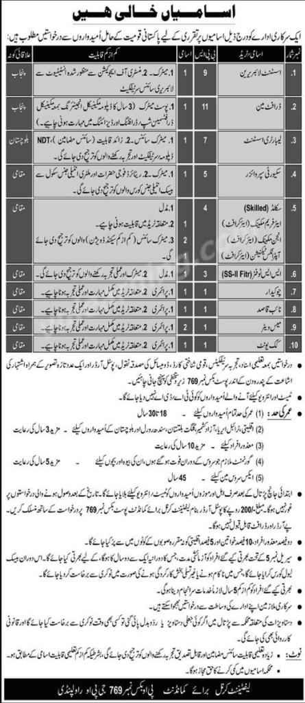Below is the complete detail of the job positions announced under PO Box Number 769 Rawalpindi.