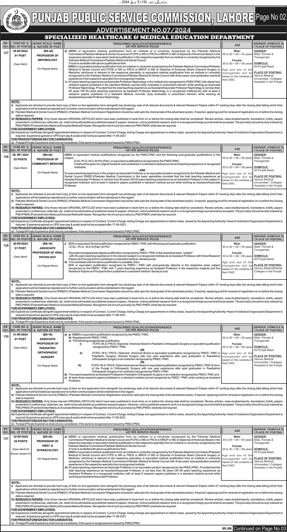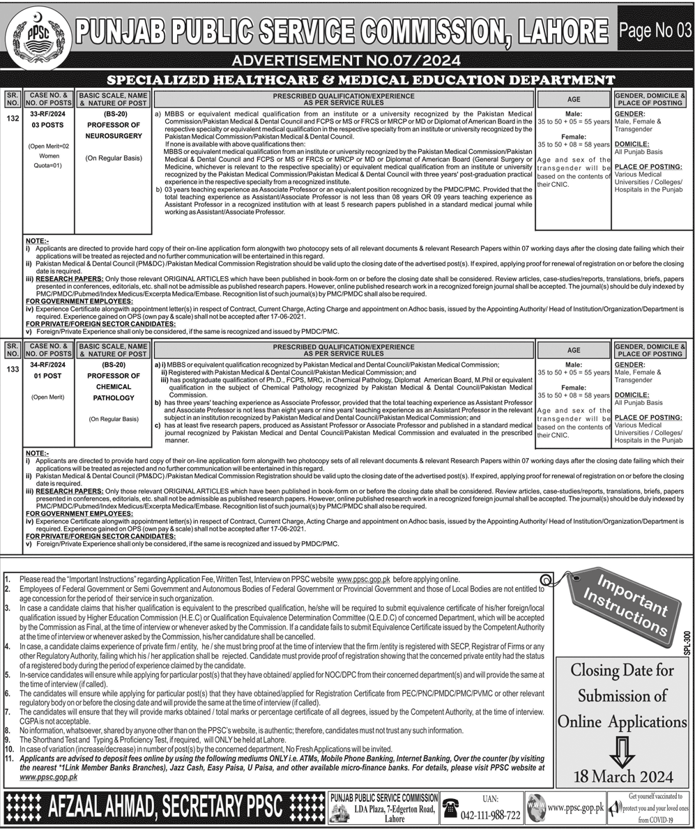 - While applying for a particular post(s), the candidates will ensure they have obtained/applied for a registration certificate from PEC/PNC/PDDC/PMC.PVMC or other relevant regular body on or before the closing date will provide the same at the time of the interview (if called).