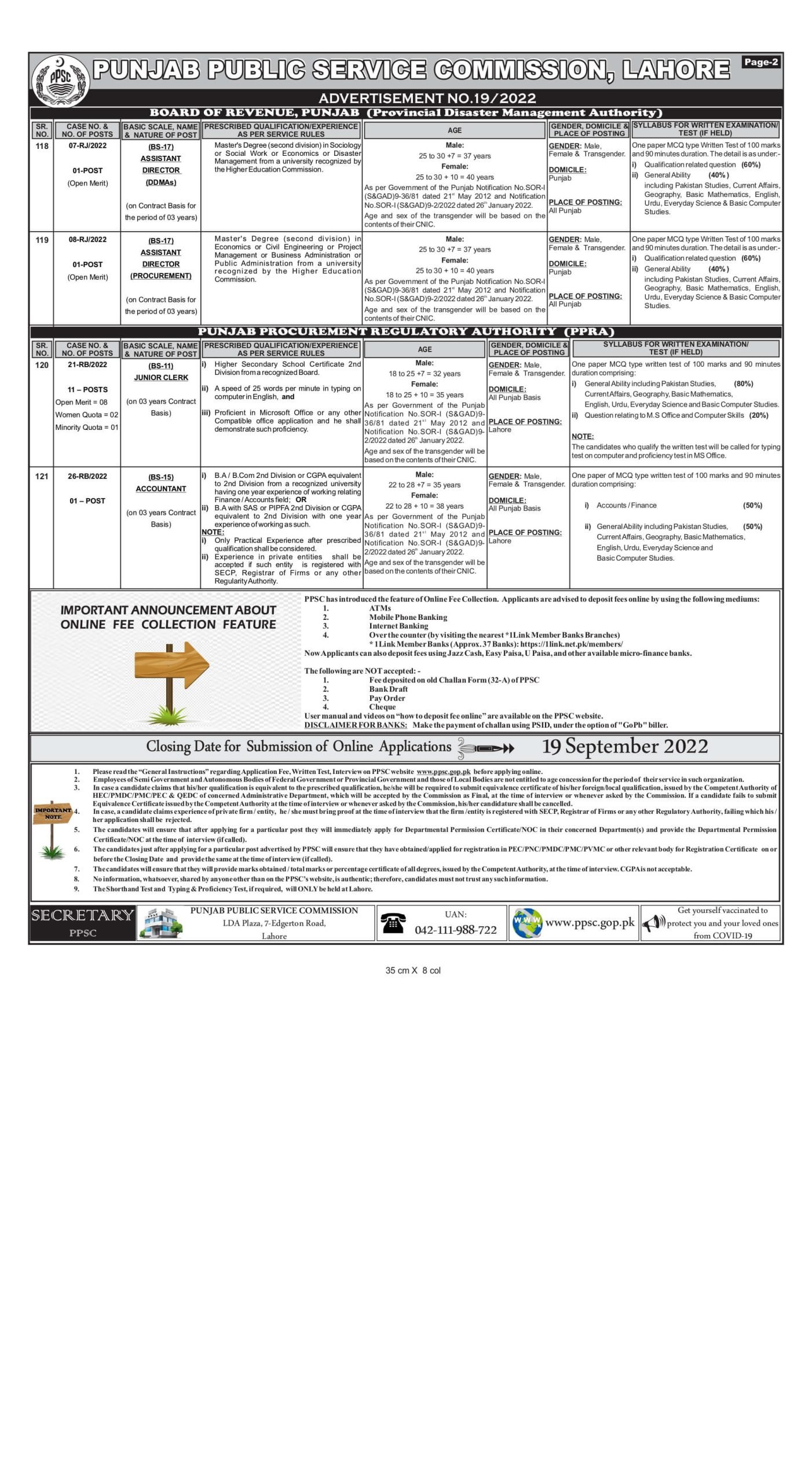 Punjab Public Service Commission (PPSC) advertisement # 19/2022 brief details are below.
