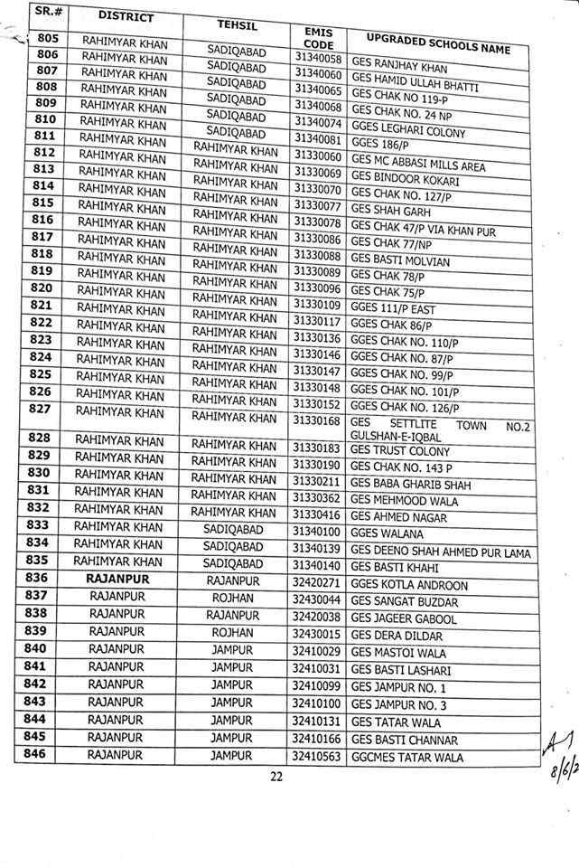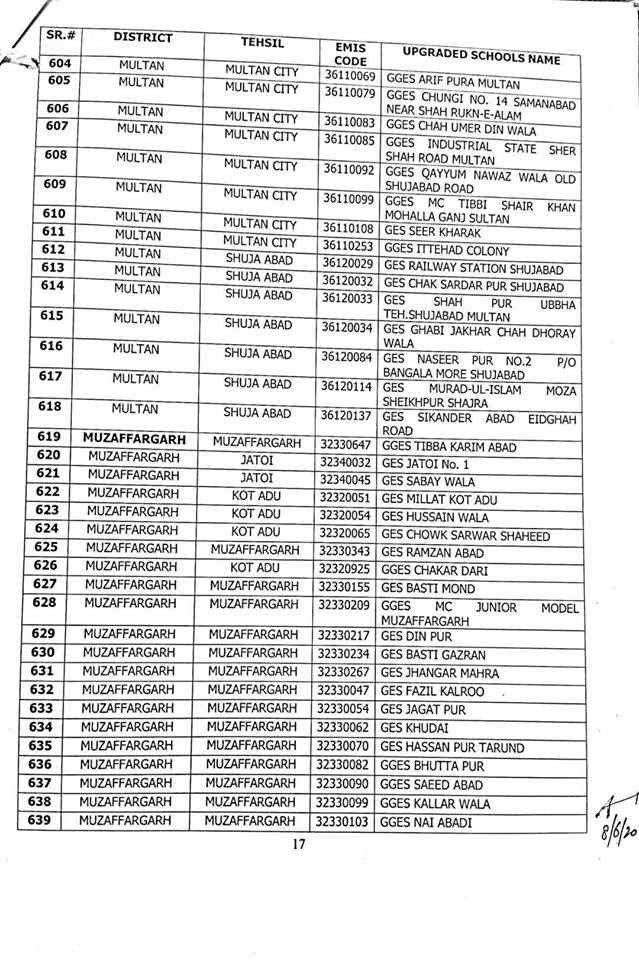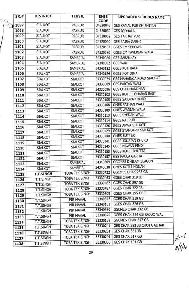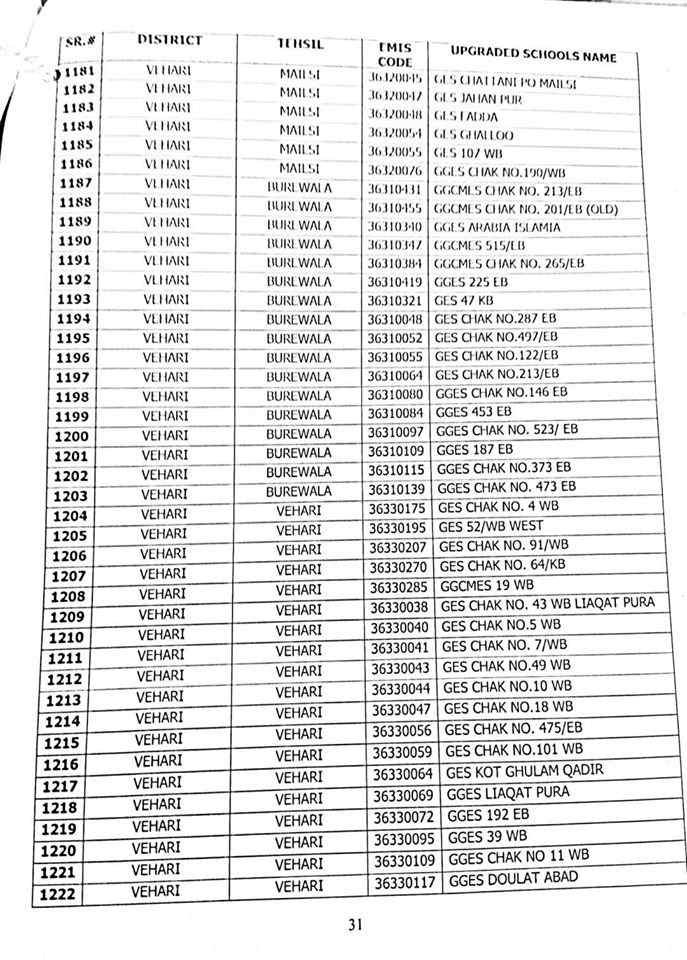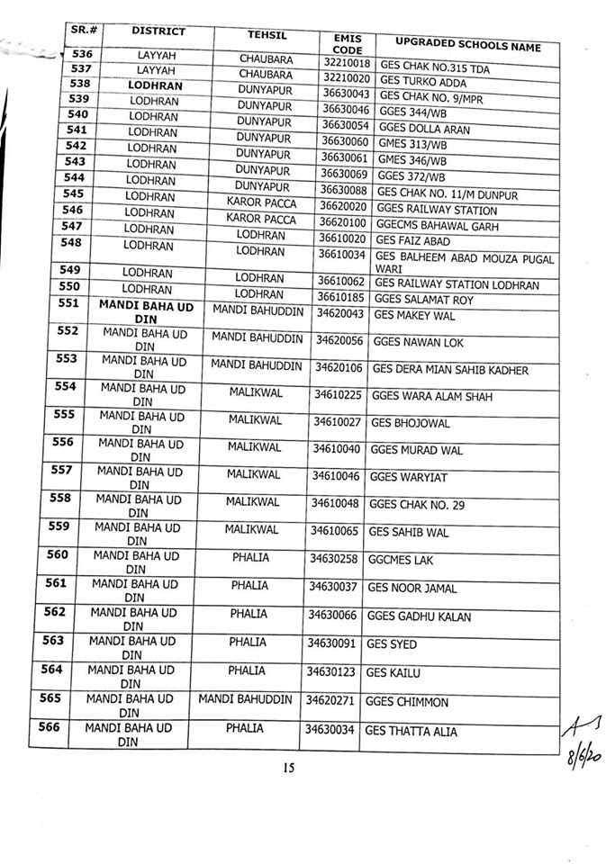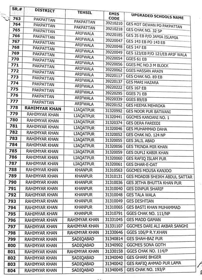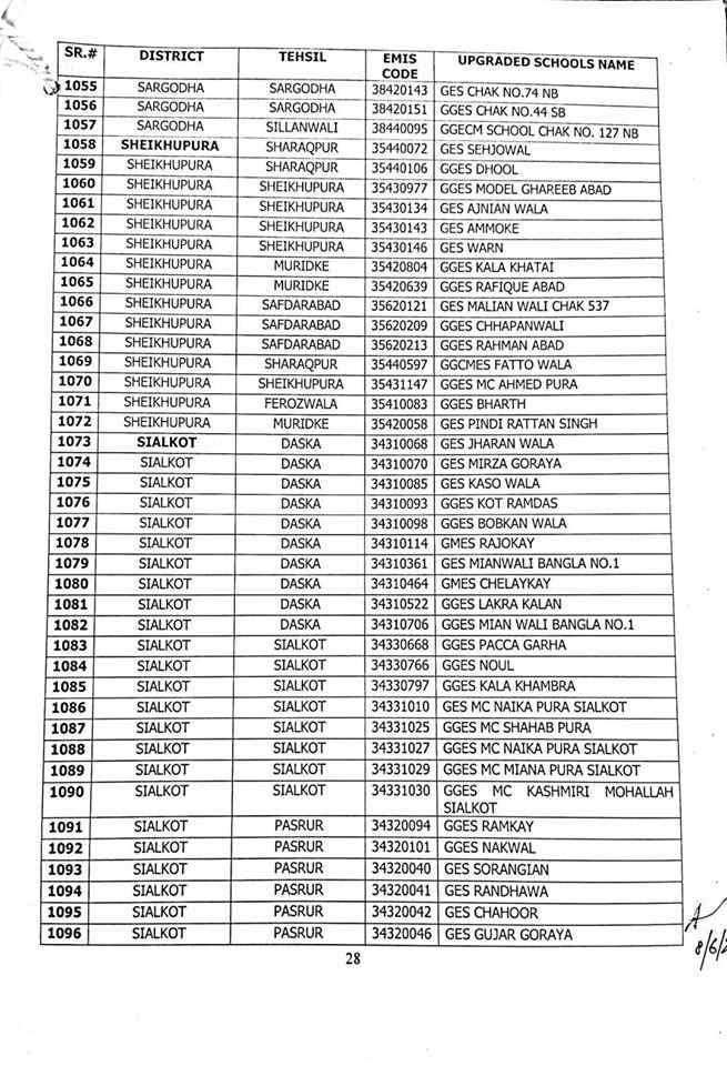 here are complete 1227 upgraded elementary schools in Punjab district wise.