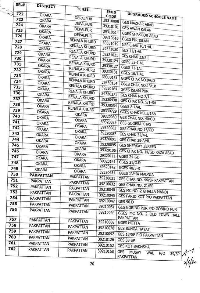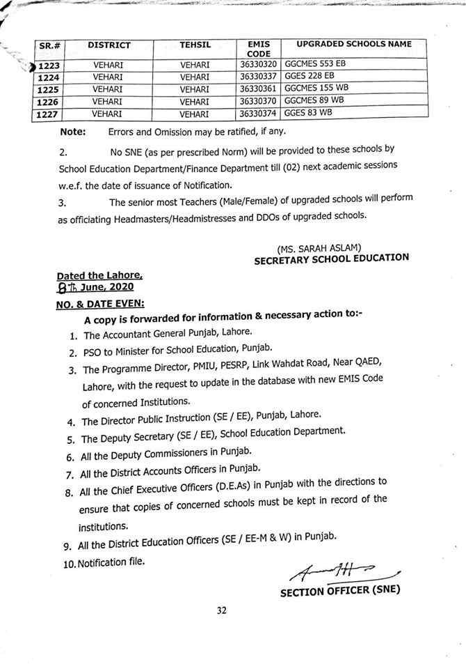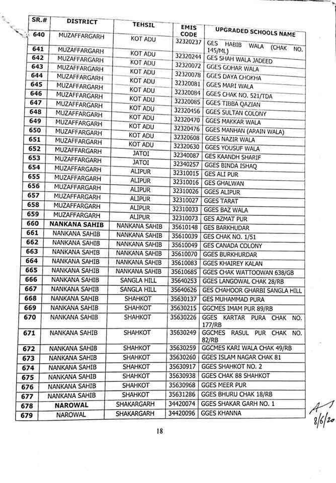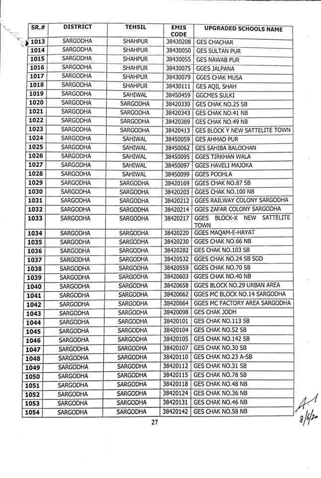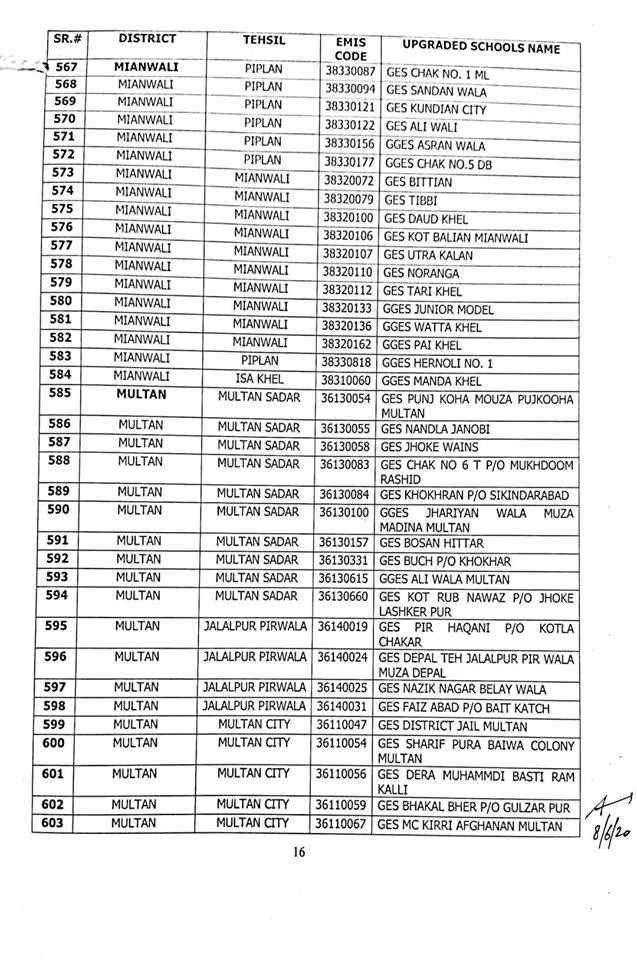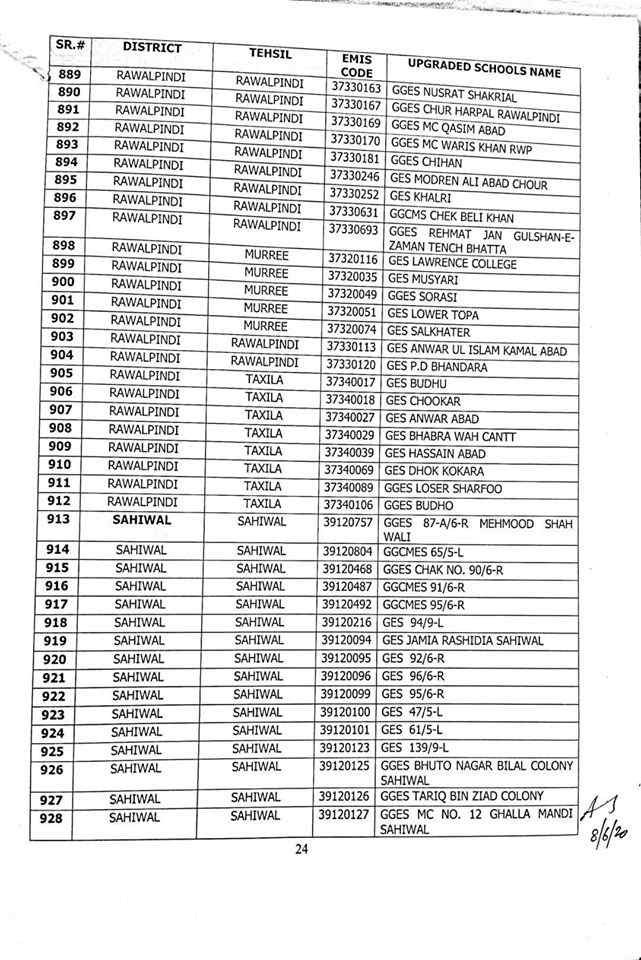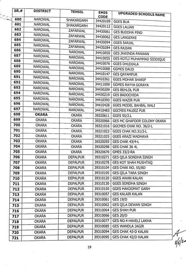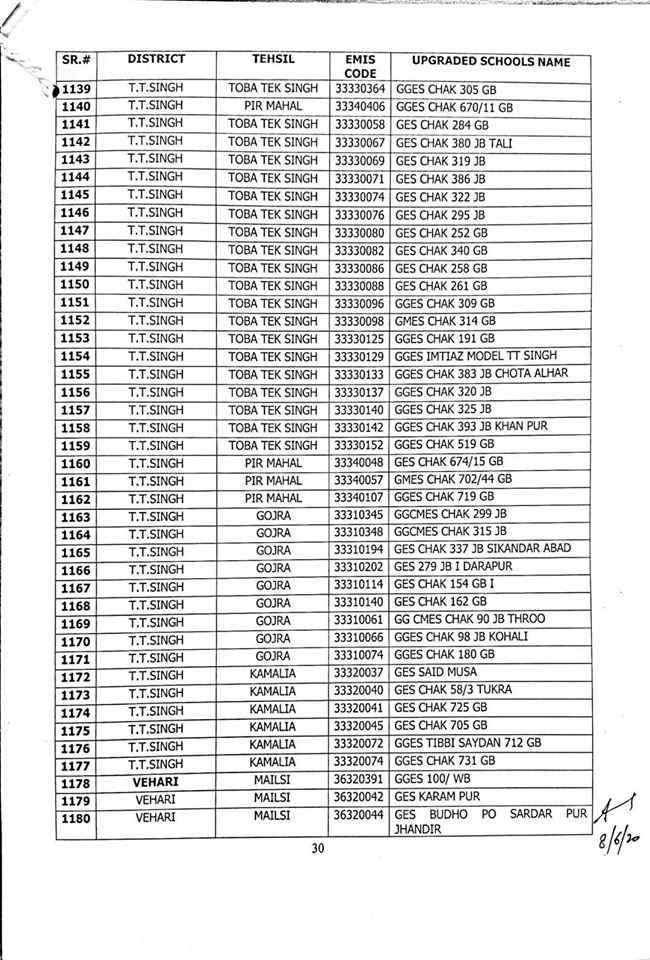 here are complete 1227 upgraded elementary schools in Punjab district wise.