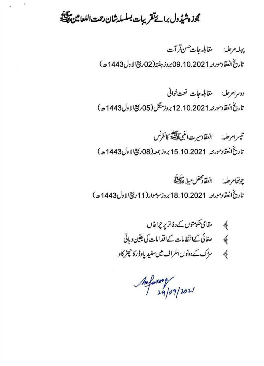 The Punjab government recently issued the Activities schedule to celebrate the Shane- Rehmatul-Lil-Alameen 2021. However, the announced schedule for different activities is from 01-12 Rabi-Ul-Awal 1443. However, the announced activities are for the Punjab Province.