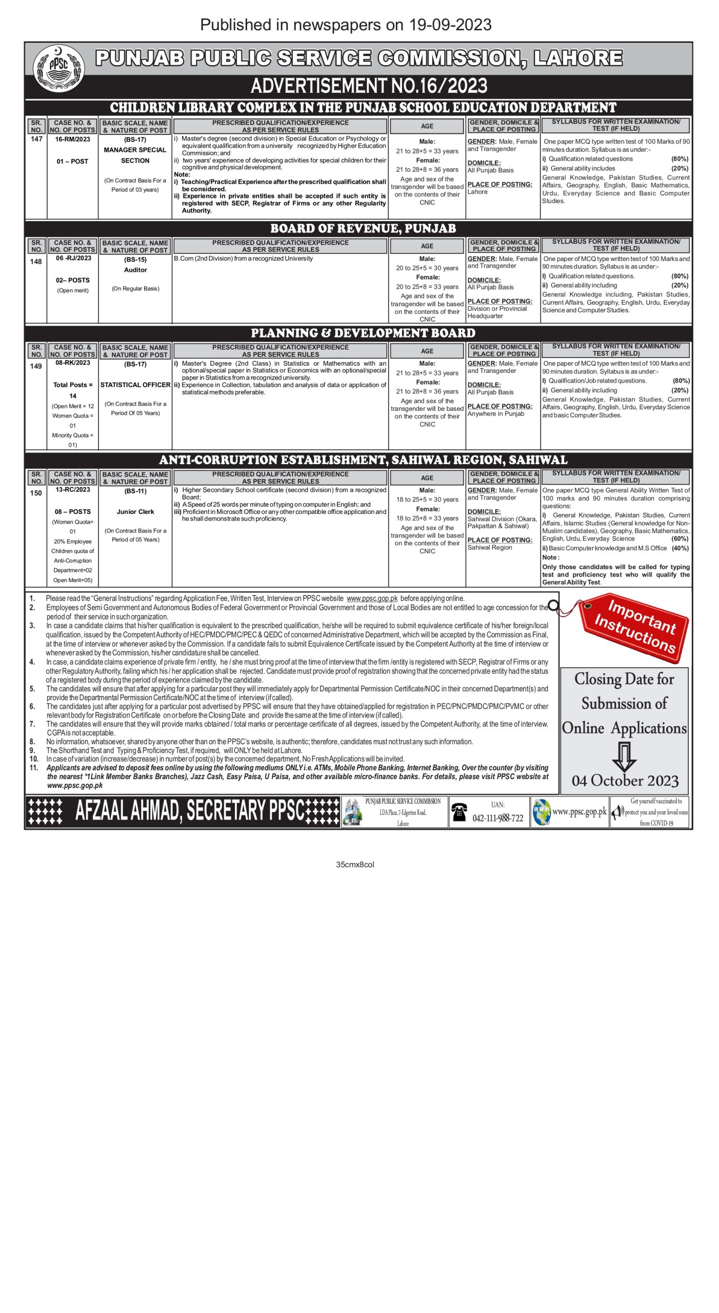 PPSC Job Details 2023