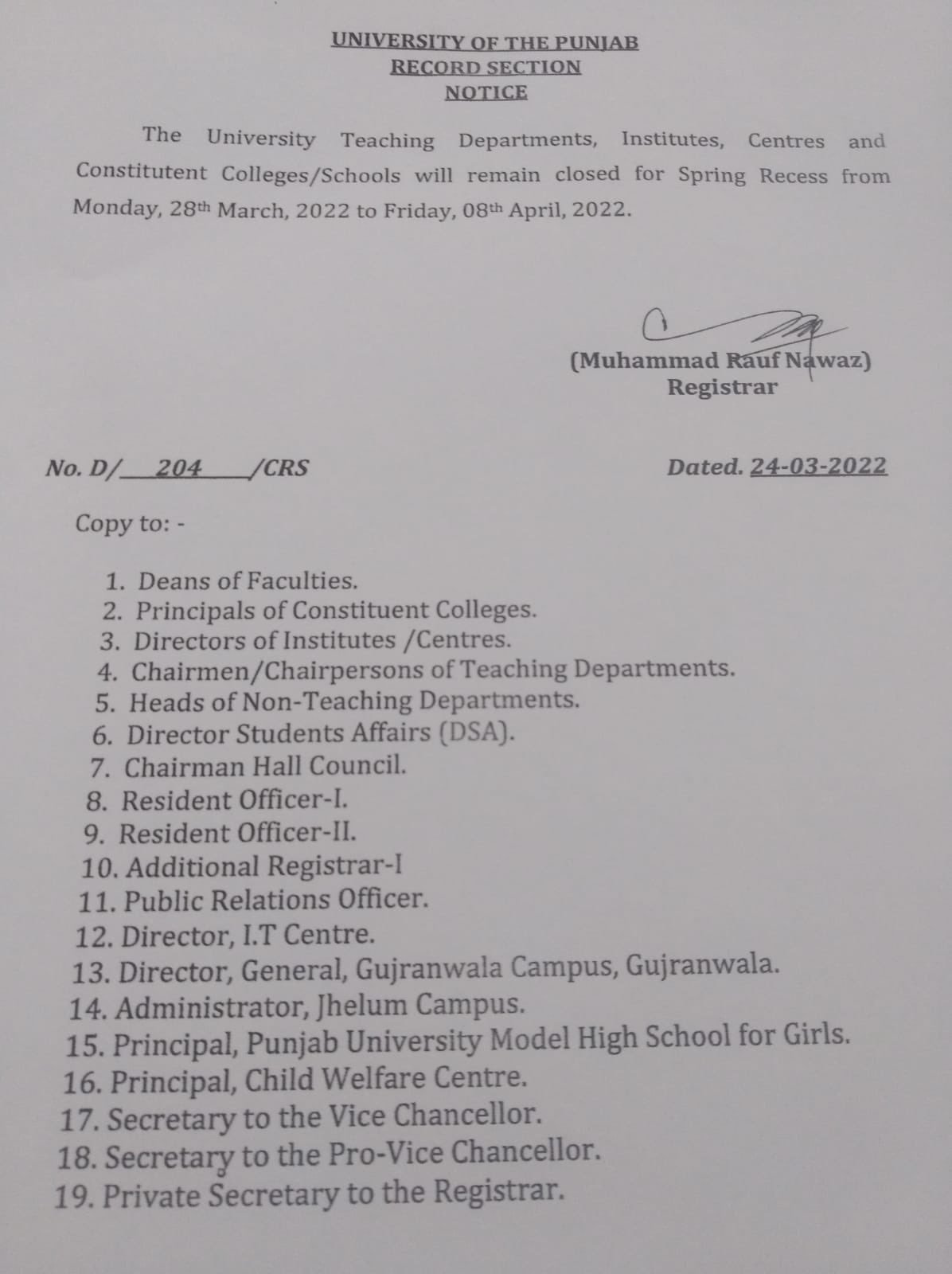 According to the latest notification, the University of Punjab issued a notification regarding the spring holiday. As per the news, we are glad to inform all PU students that Vice-Chancellor of Punjab University Niaz Ahmad Akhtar officially announces public holidays from March 28 to April 8. Due to the spring season, they decided to shut down the University till April 8. PU Vice-Chancellor announced this decision via Twitter. The Vice-Chancellor sent this notification to all concerned departments.