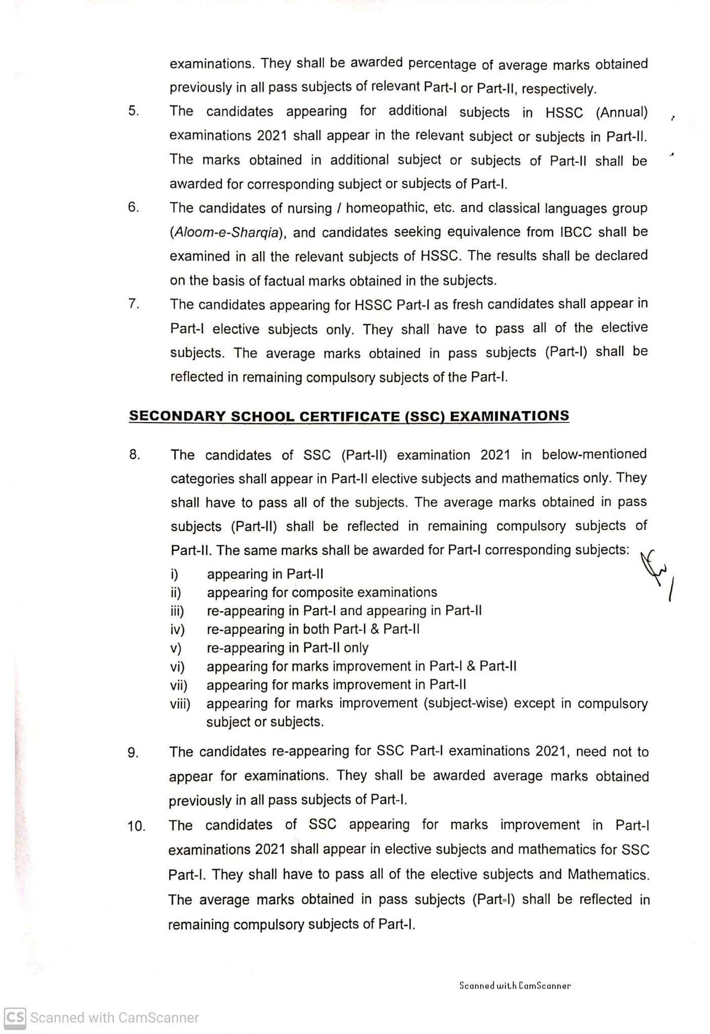 - Candidates of SSC and HSSC (part-II) will appear in elective subjects only, and they have to pass all elective subjects. The average marks students will secure in elective subjects will be reflected in the compulsory subject (part-II) marks. However, the same marks will be for the SSC/HSSC part-I-related subjects.