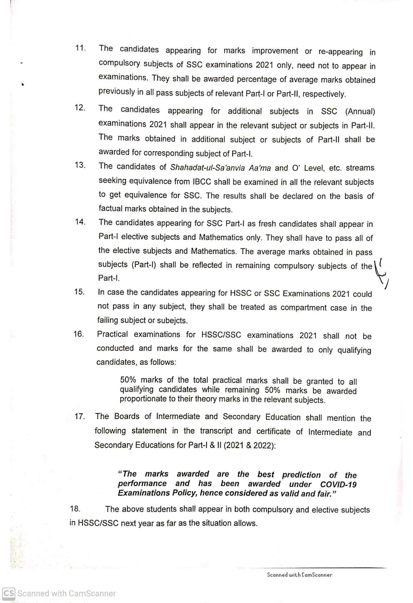 - SSC and HSSC annual practical exams 2021 will not happen. So, the government will give 50% marks to all qualifying candidates while the other 50% will be according to theory marks.