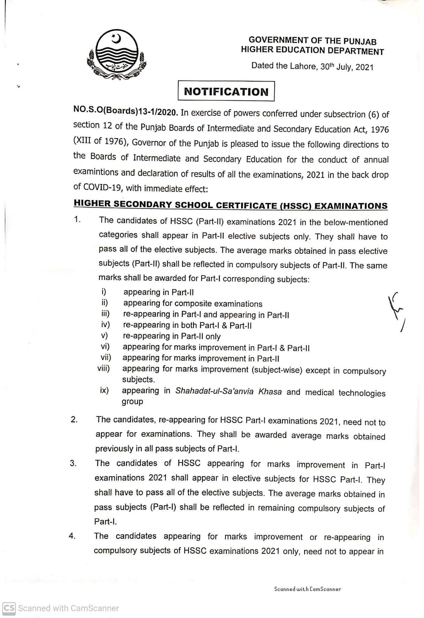 For further complete details, below is the attachment of HED’s complete official notification regarding the SSC/HSSC marks policy 2021.