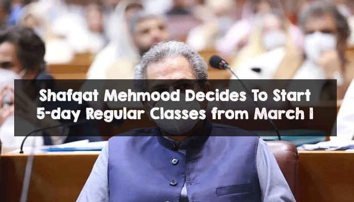 According to the latest notification, Federal Minister for Education and Professional Training Shafqat Mehmood officially announced to start regular classes from March 01. On Thursday, Shafqat Mehmood issued a notification and ordered all other educational institutes to conduct regular classes. Earlier, the Federal Education Minister advised that 50% of students will attend the class on one day and the rest of the other students will attend the class on the next day. Therefore, Shafqat Mehmood tweeted that all schools will go back to regular 5-day classes from Monday, March 1. Shafqat Mehmood also imposed restrictions in some major cities of Pakistan.