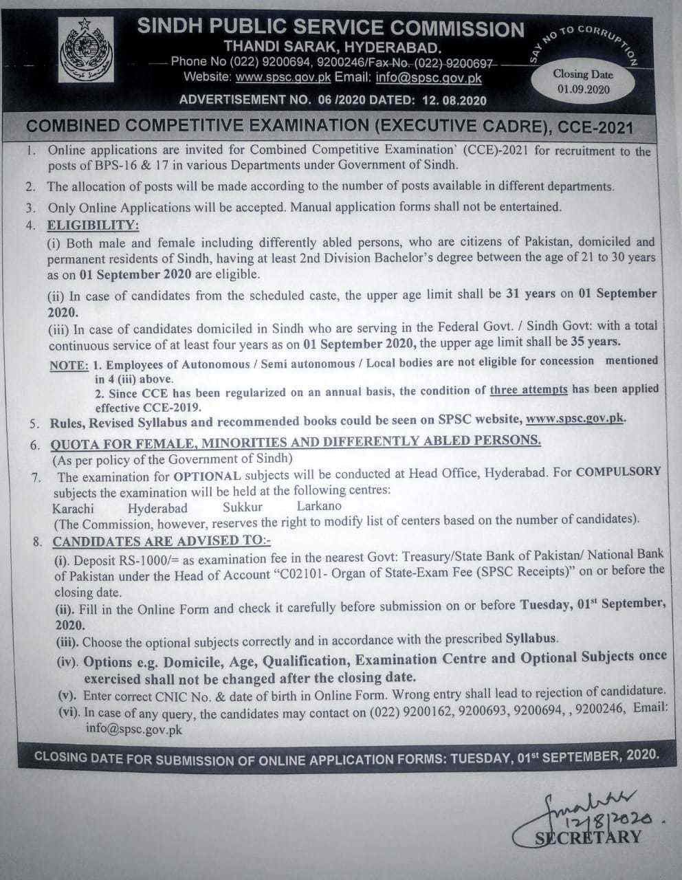 Sindh Public Service Commission has announced applications for Combined Competitive Examination CCE-2021 for the post of BPS-16 and BPS-17. They opened vacancies in various departments under the Government of Sindh. Both males and females are highly encouraged to apply. Online applications will be accepted.