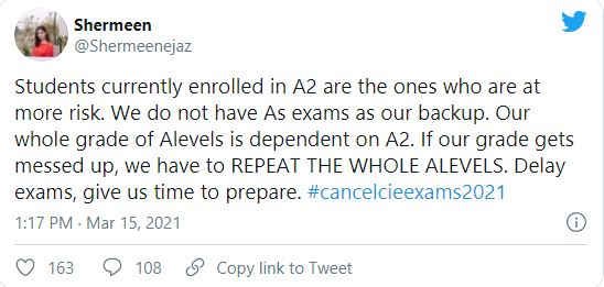 Below are some tweets that students posted in demand of the cancellation of Cambridge International Exams 2021.